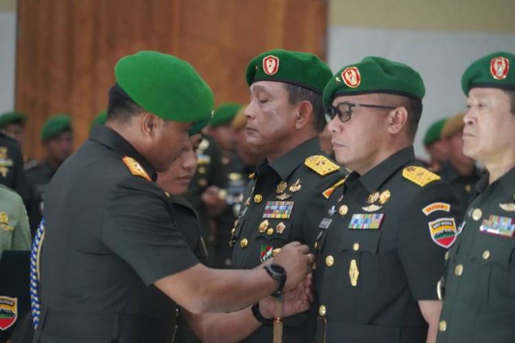 Panglima Kodam I/Bukit Barisan, Mayjen TNI Rio Firdianto, memimpin serah terima jabatan (Sertijab) sejumlah pejabat Kodam I/BB dan Tradisi Korps, di Balai Prajurit Makodam I/BB, Medan, Kamis (27/2/2025).