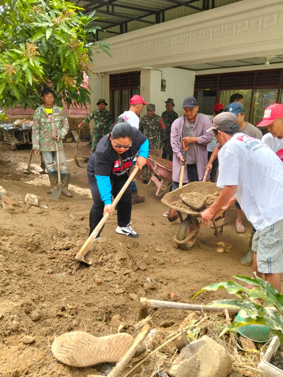 Pengurus dan anggota yang turun secara bergantian untuk hari ini ada 20 orang, karena semalam setelah banjir kita juga sudah membantu membersihkan material lumpur, batu dan sampah lainnya.