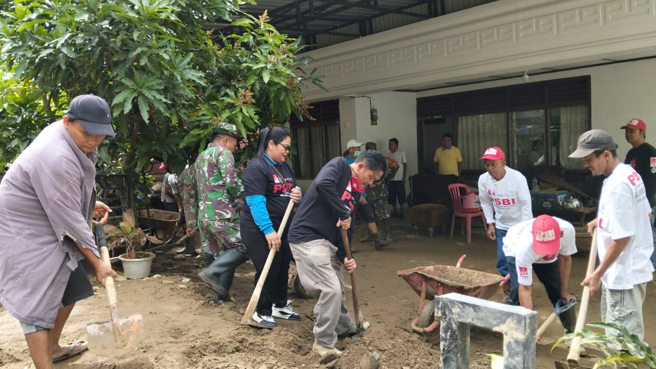 Punguan Simbolon dohot Boruna Indonesia (PSBI) Wilayah Parapat dikomando Ketua Benris Simbolon (Ketua), lakukan aksi sosial dan gotongroyong, membantu anggota yang terdampak banjir bandang Parapat, Selasa (18 Maret 2025).