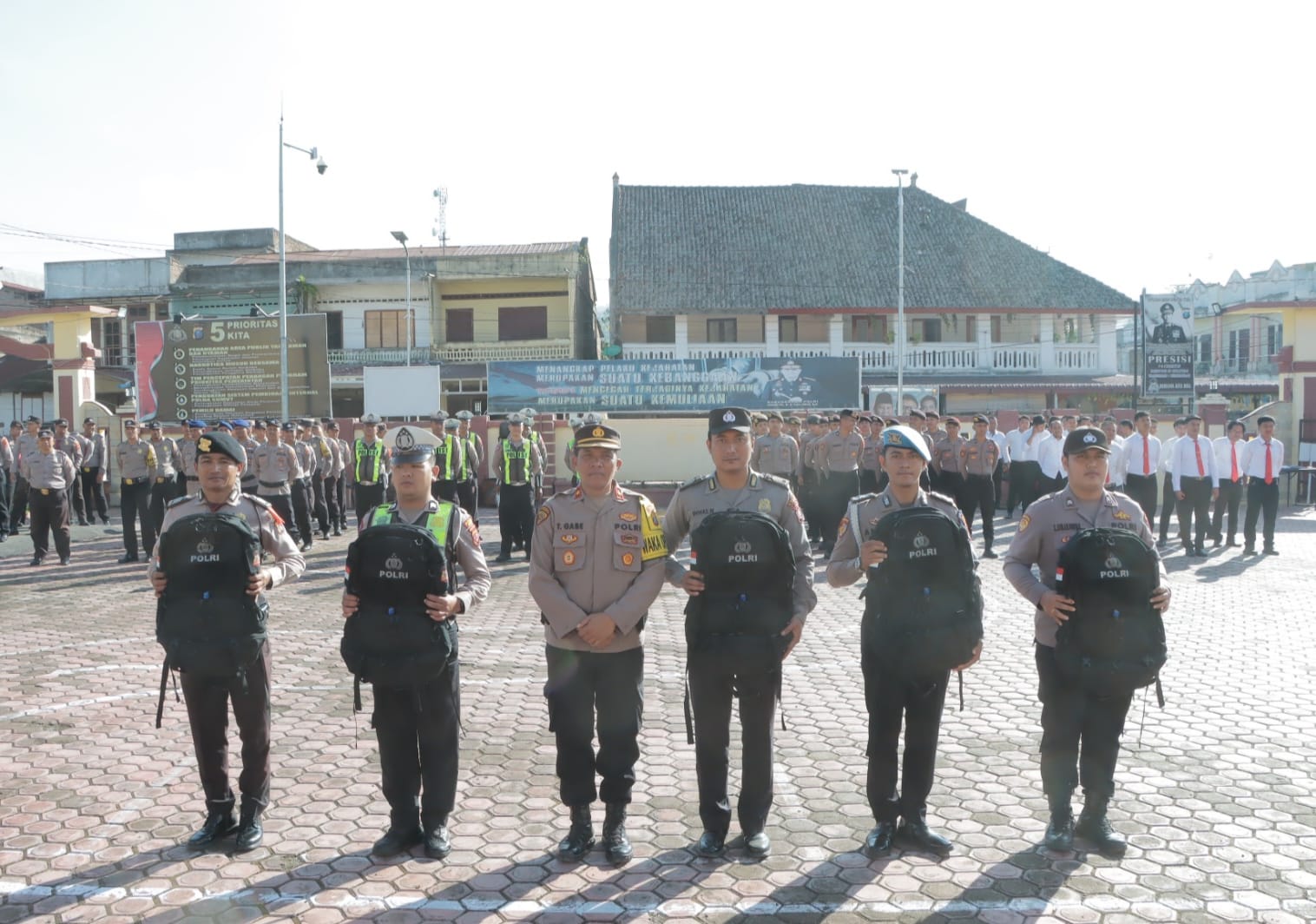 Setelah Upacara Bendera Bulanan, dilakukan pemberian reward kepada personil berprestasi, penyerahan perlengkapan Pemilu 2024, dan pemeriksaan kendaraan dinas.