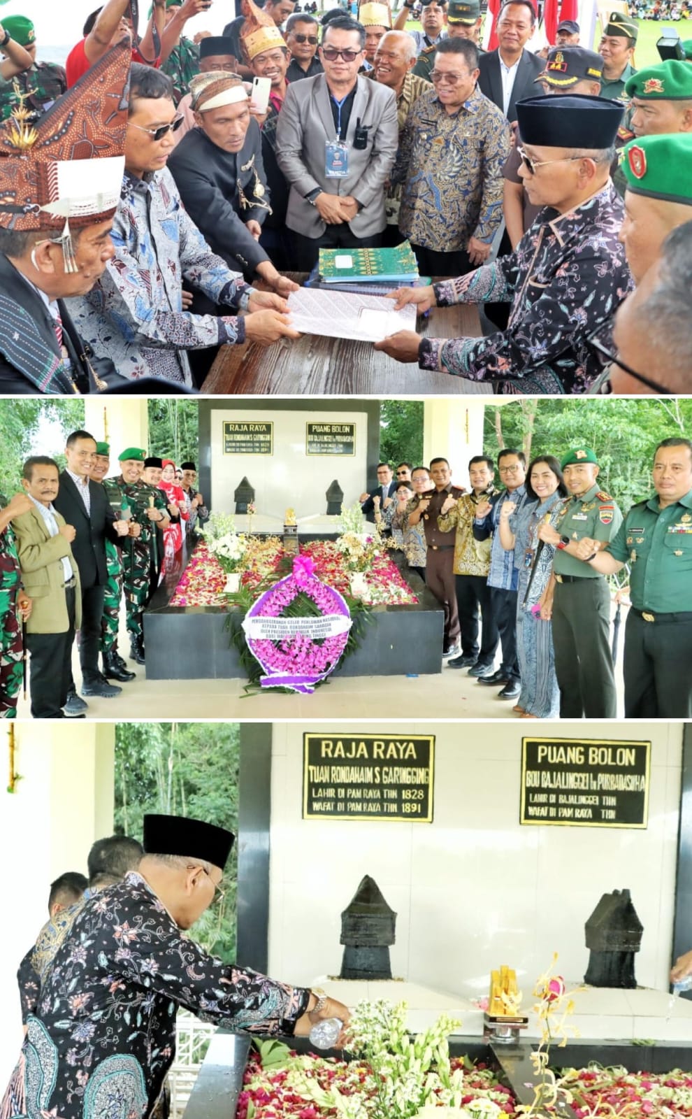 Setelah penyerahan, acara dilanjutkan dengan ziarah ke makam Pahlawan Nasional Tuan Rondahaim. Hadir dalam kegiatan ini berbagai tokoh penting, antara lain Prof. Bungaran Saragih, Ketua Ihutan Bolon Hasadaon Saragih Garangging Baru Pakon Panogolan, Walikota Pematangsiantar beserta istri, Walikota Tebing Tinggi beserta istri, Ketua DPRD, Sugiarto, jajaran Forkopimda, Sekda Mixnon Andreas Simamora bersama Pera pejabat dilingkungan Pemkab Simalungun, Ketua TP PKK, Ketua Dharma Wanita, serta berbagai organisasi masyarakat dan undangan lainnya.