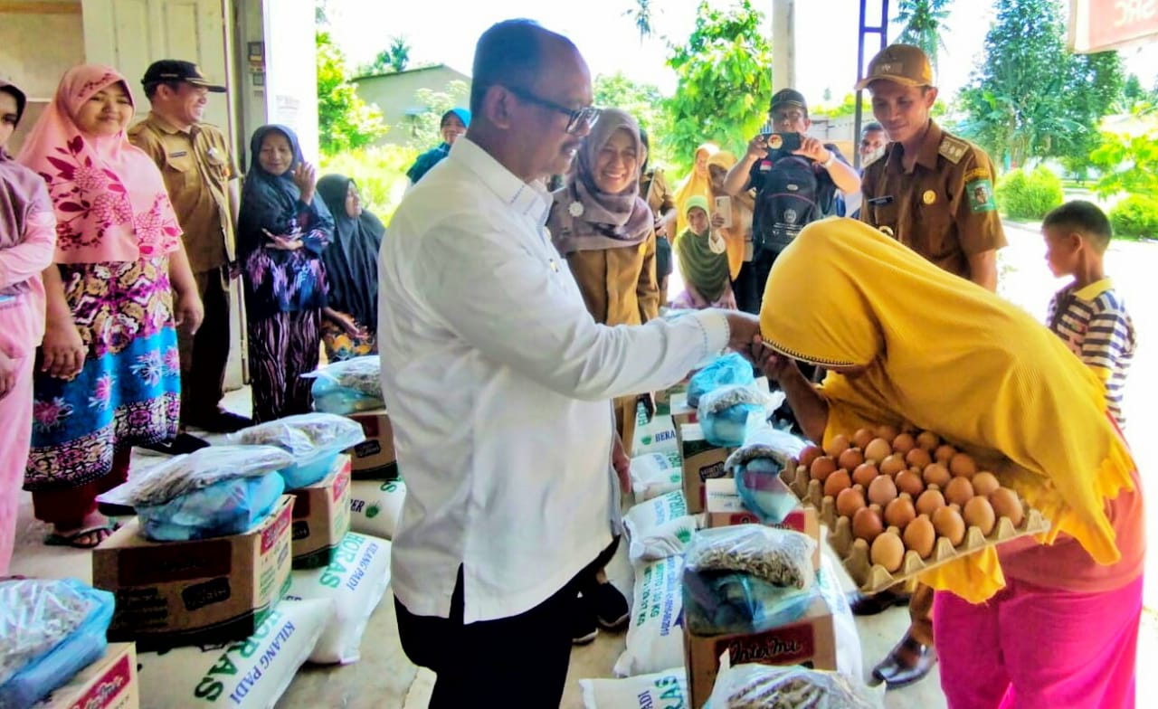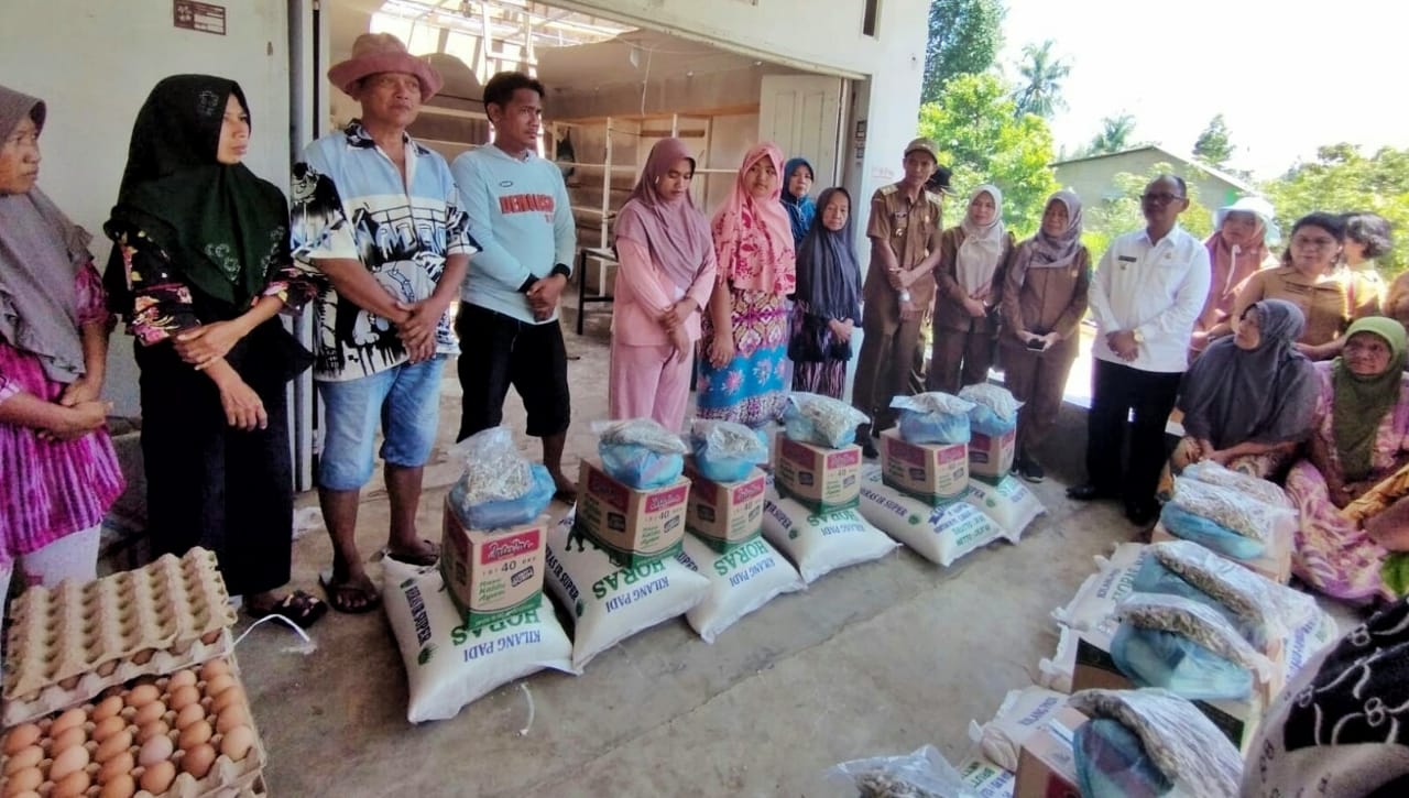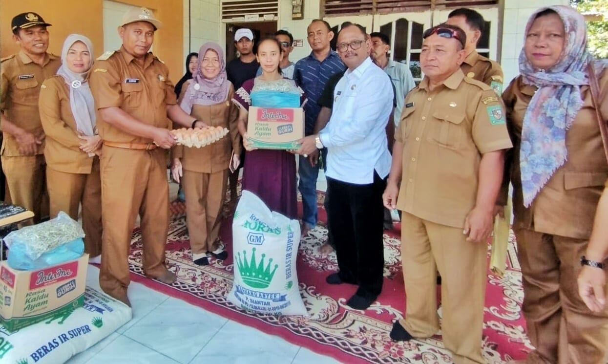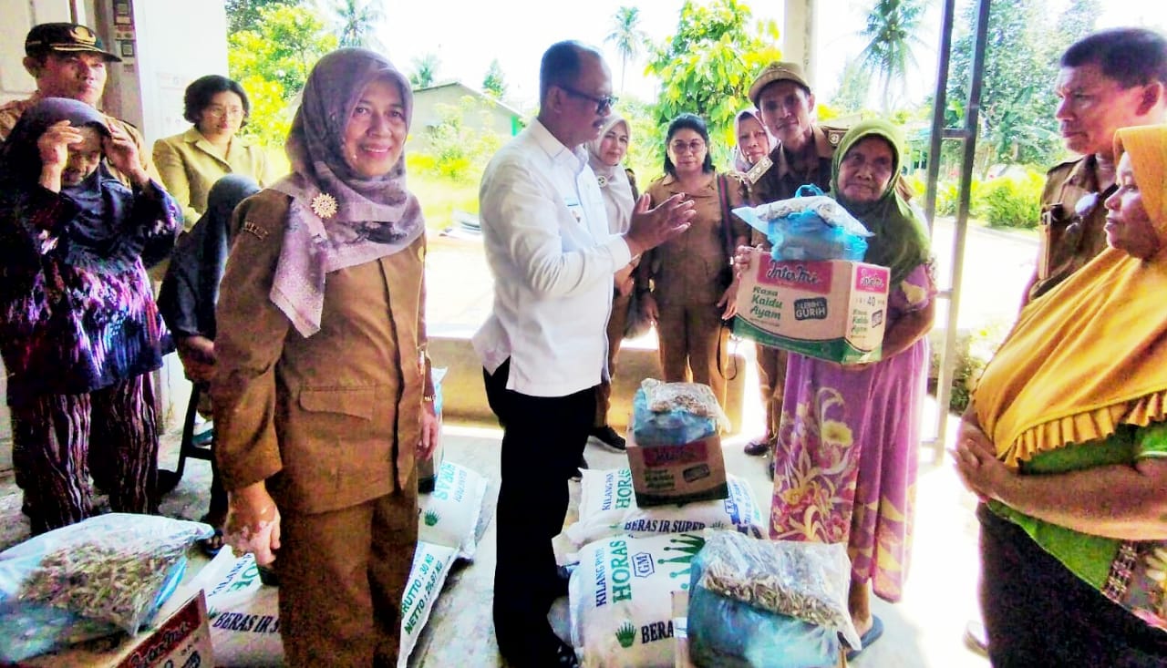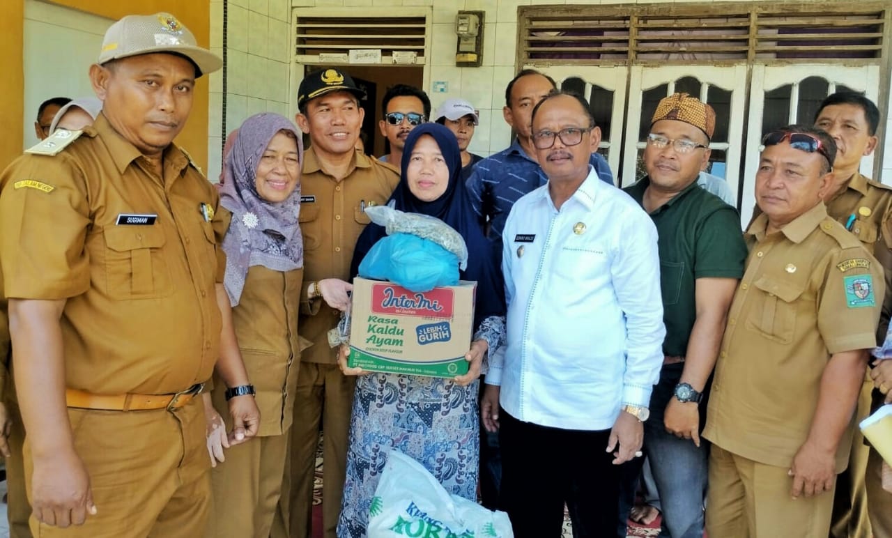 Pemerintah Kabupaten Simalungun melalui dinas sosial menyerahkan bantuan paket sembako Kepada 24 Kepala Keluarga (KK) Korban musibah bencana alam puting beliung di Kecamatan Pematang Bandar, Simalungun, Sumut, Senin (19/6/2023).
