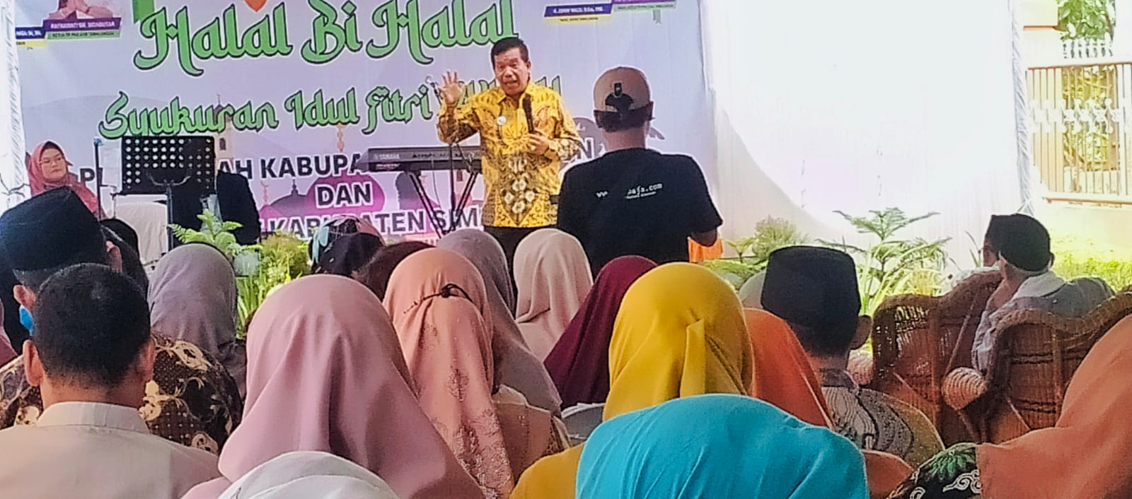 Pemerintah Kabupaten (Pemkab) Simalungun dan masyarakat menggelar acara Halal Bi Halal Hari Raya Idul Fitri Tahun 1445 H/2024 M di Rumah Dinas Wakil Bupati Simalungun, Jln Suri-suri Nagori Pamatang Simalungun, Kecamatan Siantar, Simalungun, Sumut, Sabtu (27/4/2024).
