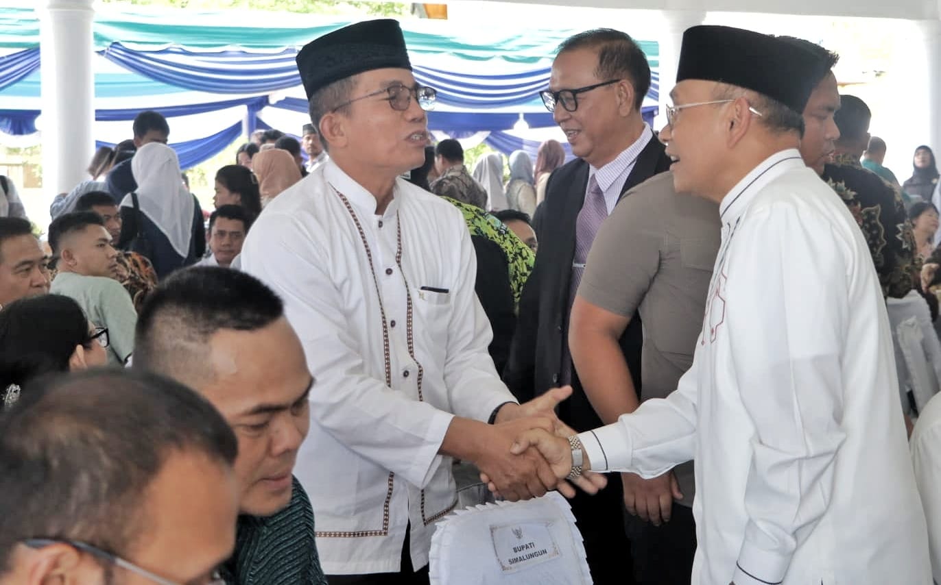 Sementara itu, Sekretaris Daerah (Sekda) Esron Sinaga mewakili seluruh Aparatur Sipil Negara (ASN) menyampaikan, atas nama ASN Kabupaten Simalungun Mengucapkan Selamat Hari Raya Idul Fitri 1446 H, mohon maaf lahir Dan batin.