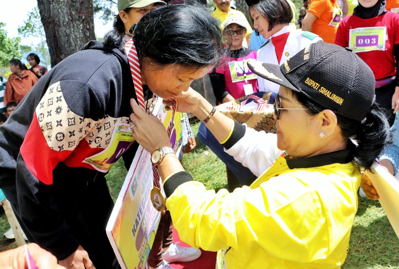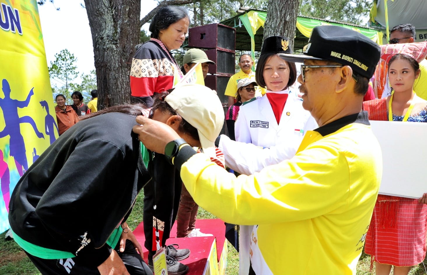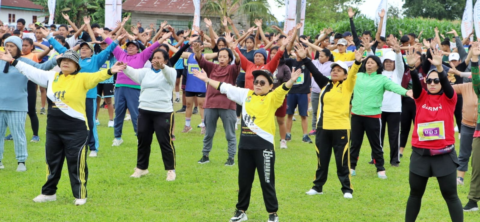 Sementara itu, untuk jarak tempuh 3 Km diikuti oleh Wakil Bupati, Dandim 0207/Sml, Sekda, Ketua TP PKK, Ketua DWP, para pimpinan perangkat daerah, anggota TP PKK, DWP, ibu-ibu Persit dan masyarakat, berakhir/finish di Huta Naga Panei Nagori Nagori Tongah.