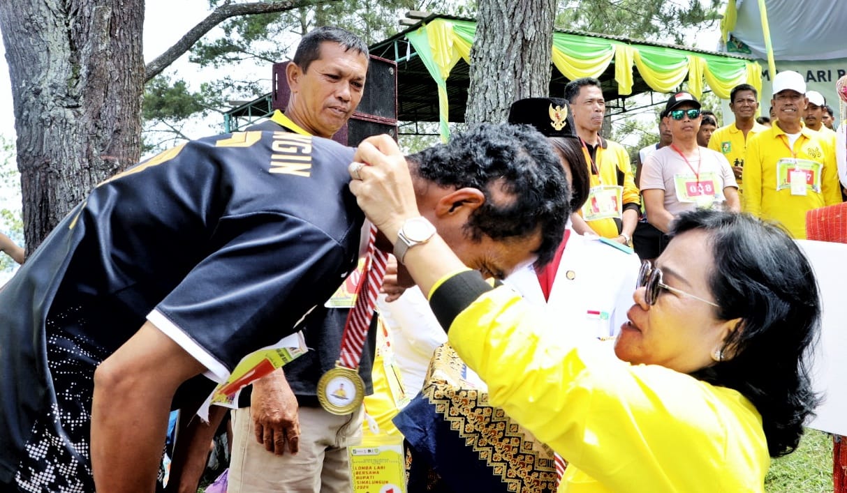 Lomba lari mengambil jarak tempuh 10 Km, 5 Km dan 3 Km diikuti oleh para pelajar, ASN, TNI, TP PKK, DWP, Persit dan masyarakat, berlangsung di Jln besar Simajarung Kabupaten Simalungun.