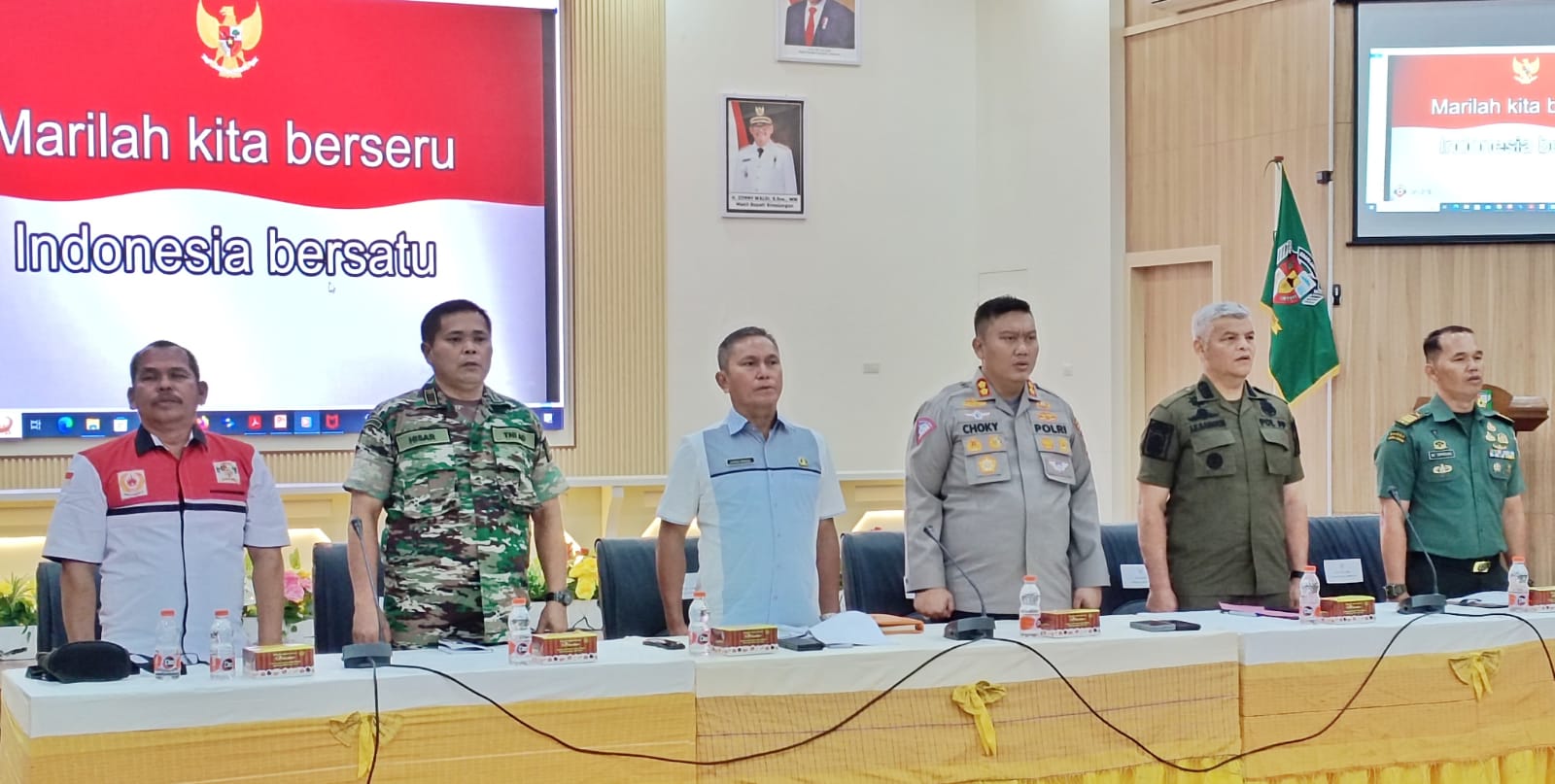 Rakor tersebut dipimpin oleh Bupati Simalungun diwakili Sekda Esron Sinaga bersama Kapolres Simalungun AKBP Choky Sentosa Meliala berlangsung di Balei Harungguan Djabanten Damanik, Kantor Bupati Simalungun, Pamatang Raya, Sumut, Rabu (14/8/2024).