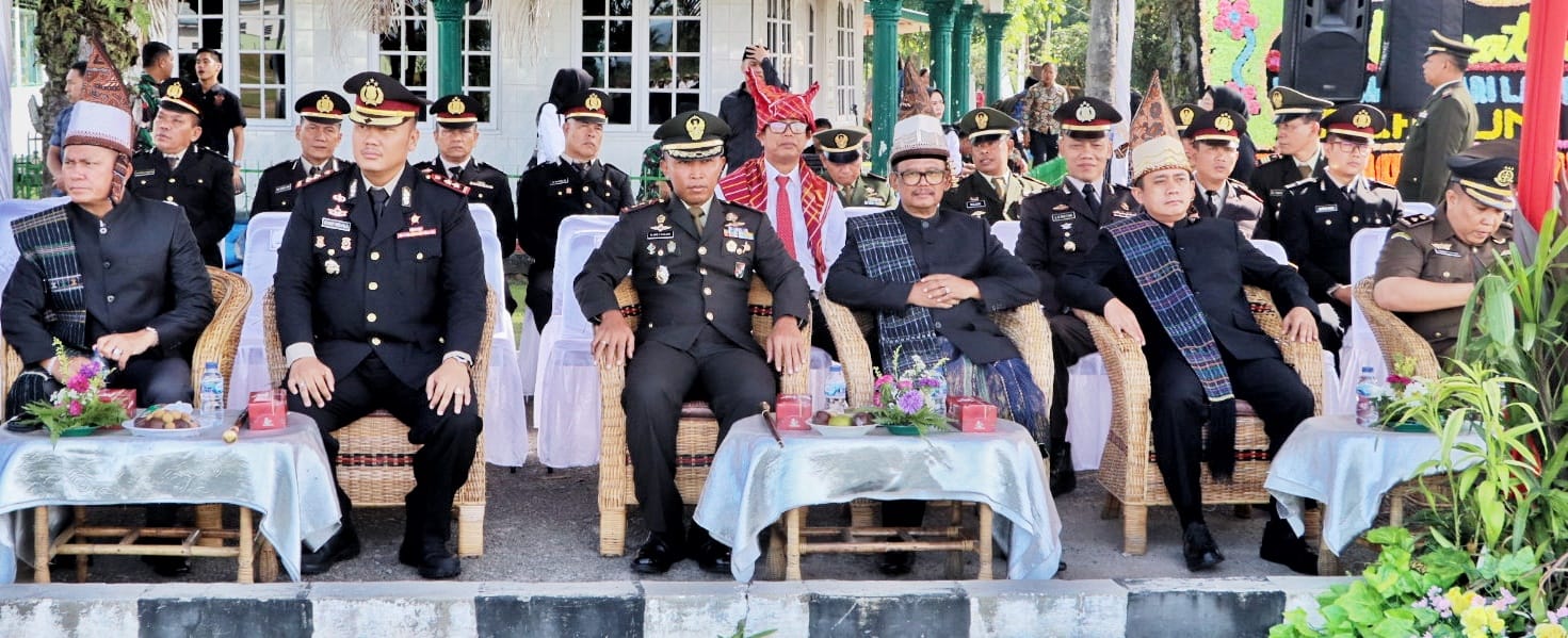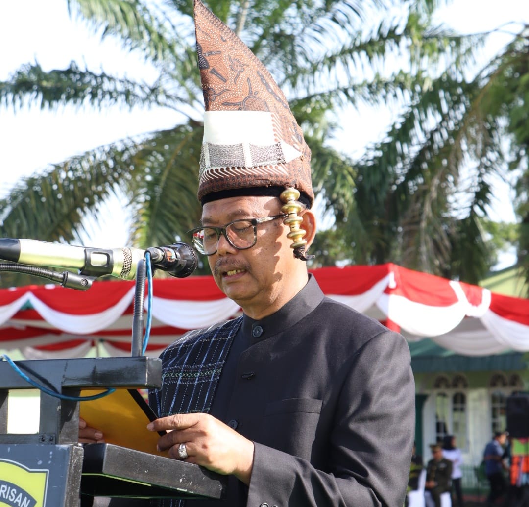 Pemerintah Kabupaten (Pemkab) Simalungun menggelar upacara peringatan Hari Lahir (Harlah) Pancasila Tahun 2024 di Lapangan Koramil 08/Bangun, Jln Asahan Kecamatan Siantar, Simalungun, Sabtu (1/6/2024).