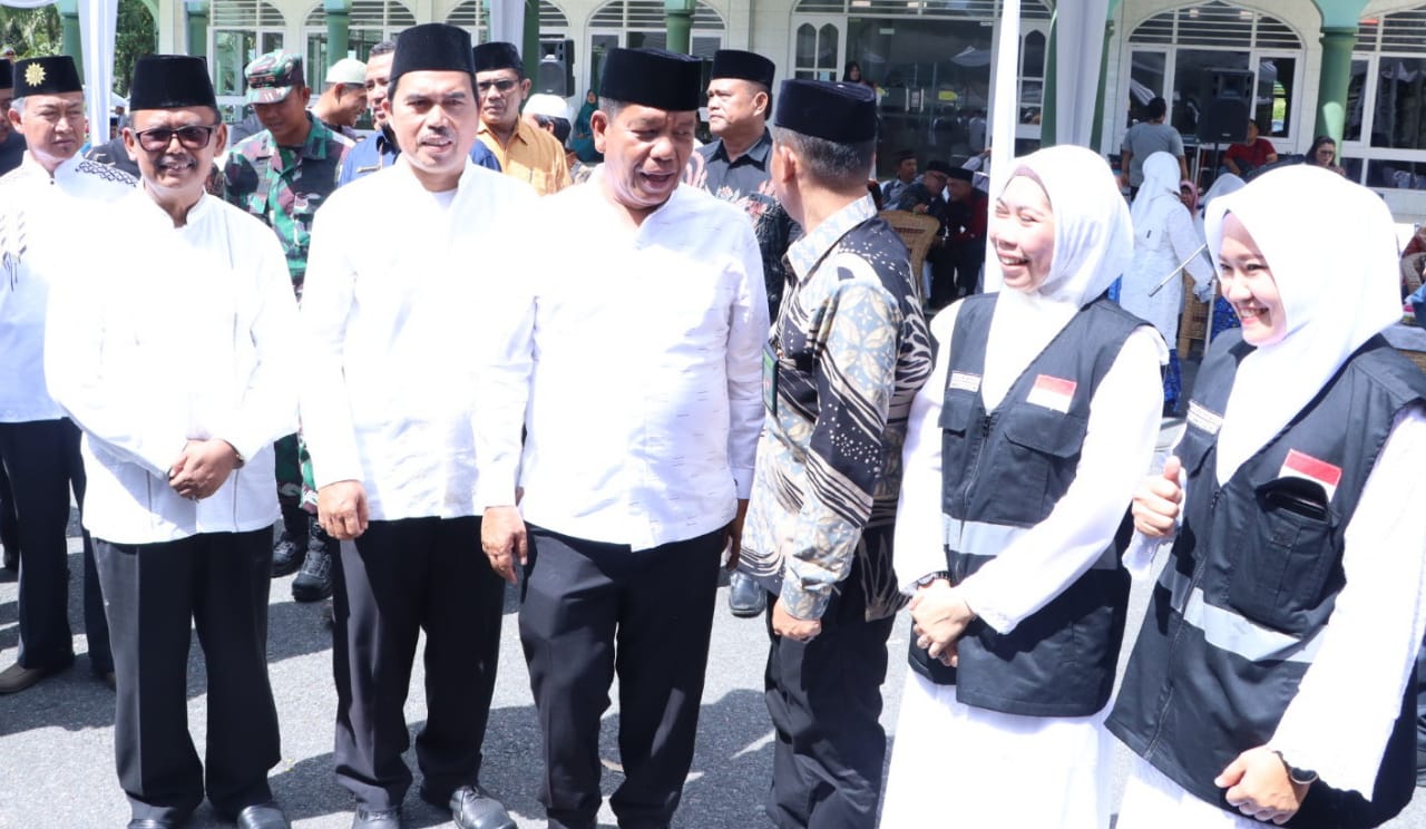 “Semoga menjadi haji dan Hajjah yang mabrur. Jaga kesehatan, apalagi dengan cuaca yang ekstrim saat ini, jaga pola makan dengan teratur,” ucap Bupati.