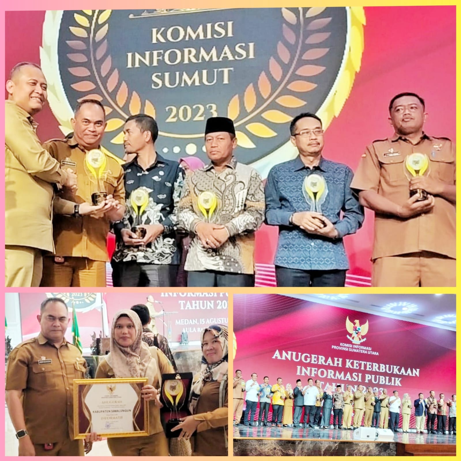 Penghargaan ini diserahkan oleh Gubsu diwakili oleh Asisten Perekonomian dan Pembangunan H Agus Tripriyono didampingi Ketua Komisi Informasi Prov. Sumut Abdul Harris Nasution kepada Bupati Simalungun diwakili Kadis Kominfo Andri Rahadian, di Aula Raja Inal Siregar Kantor Gubsu, Medan, Selasa (15/8/2023).