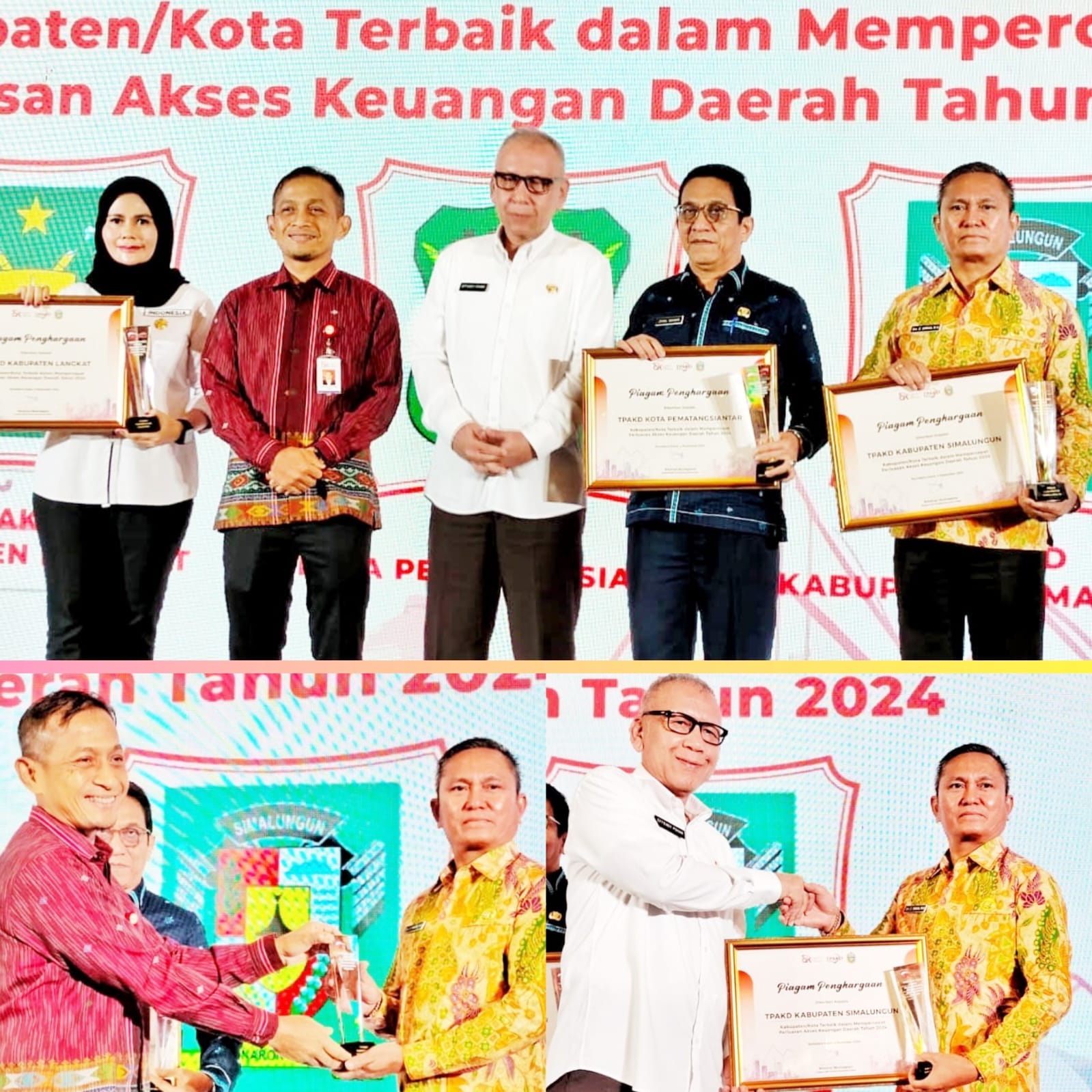 Pemerintah Kabupaten (Pemkab) Simalungun menerima penghargaan Tim Percepatan Akses Keuangan Daerah (TPAKD) Tahun 2024 dari Otoritas Jasa Keuangan (OJK) Provinsi Sumatera Utara (Prov. Sumut).
