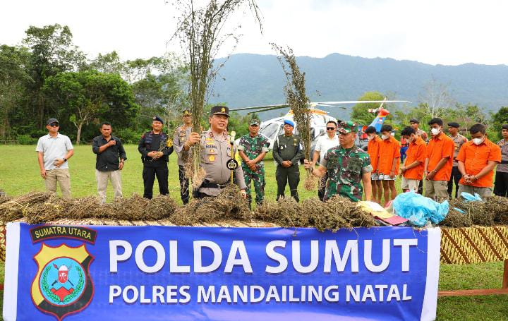 “Pemberantasan ladang ganja di Madina terkendala dengan lokasi yang berada di perbukitan dan pegunungan bermedan. Walau demikian, komitmen kita memberantas Narkoba sebagai musuh bersama,” Ujarnya.