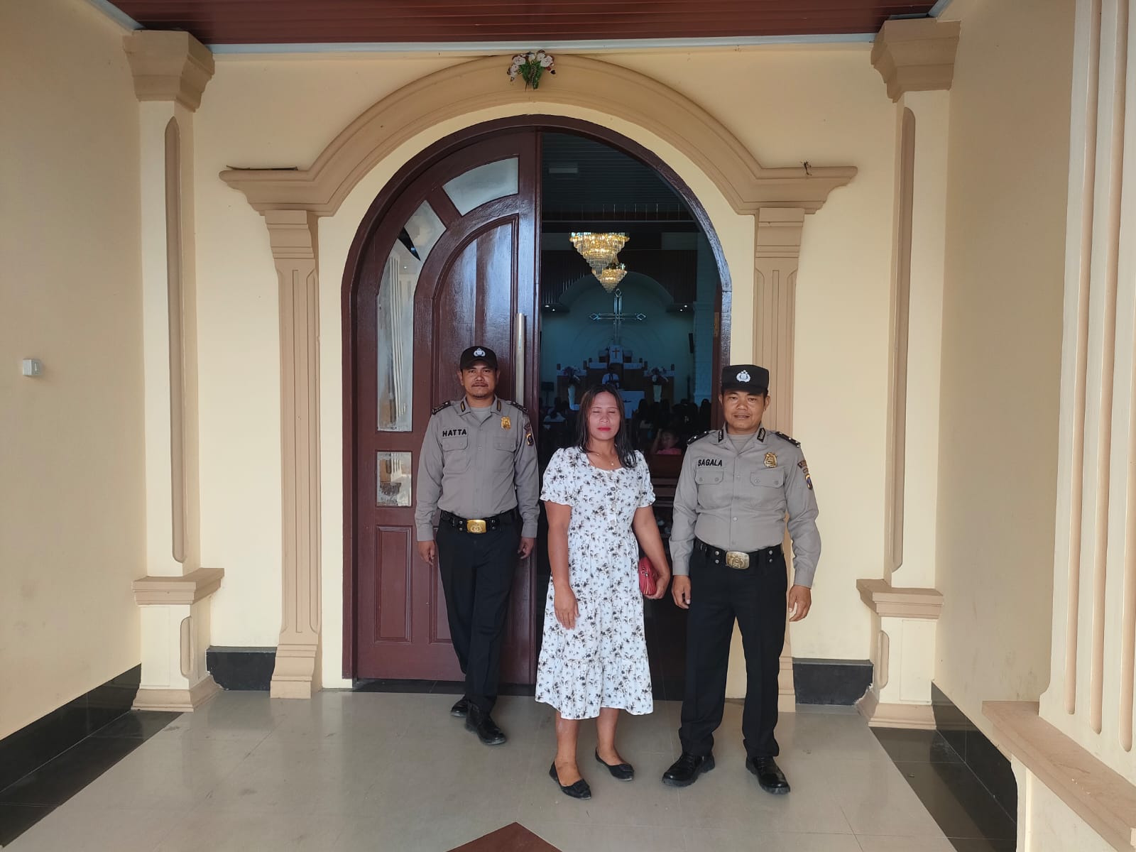 Polres Samosir melayani dengan sopan santun kepada para umat yang akan masuk Gereja. Memeriksa tas dan barang yang dibawa umat kedalam gereja dan Dihimbau kepada umat harus fokus, jangan main HP saat melaksanakan ibadah. Kegiatan ini dilaksanakan bersama remaja gereja untuk mengantisipasi barang-barang yang dicurigai yang dapat menimbulkan gangguan ibadah.