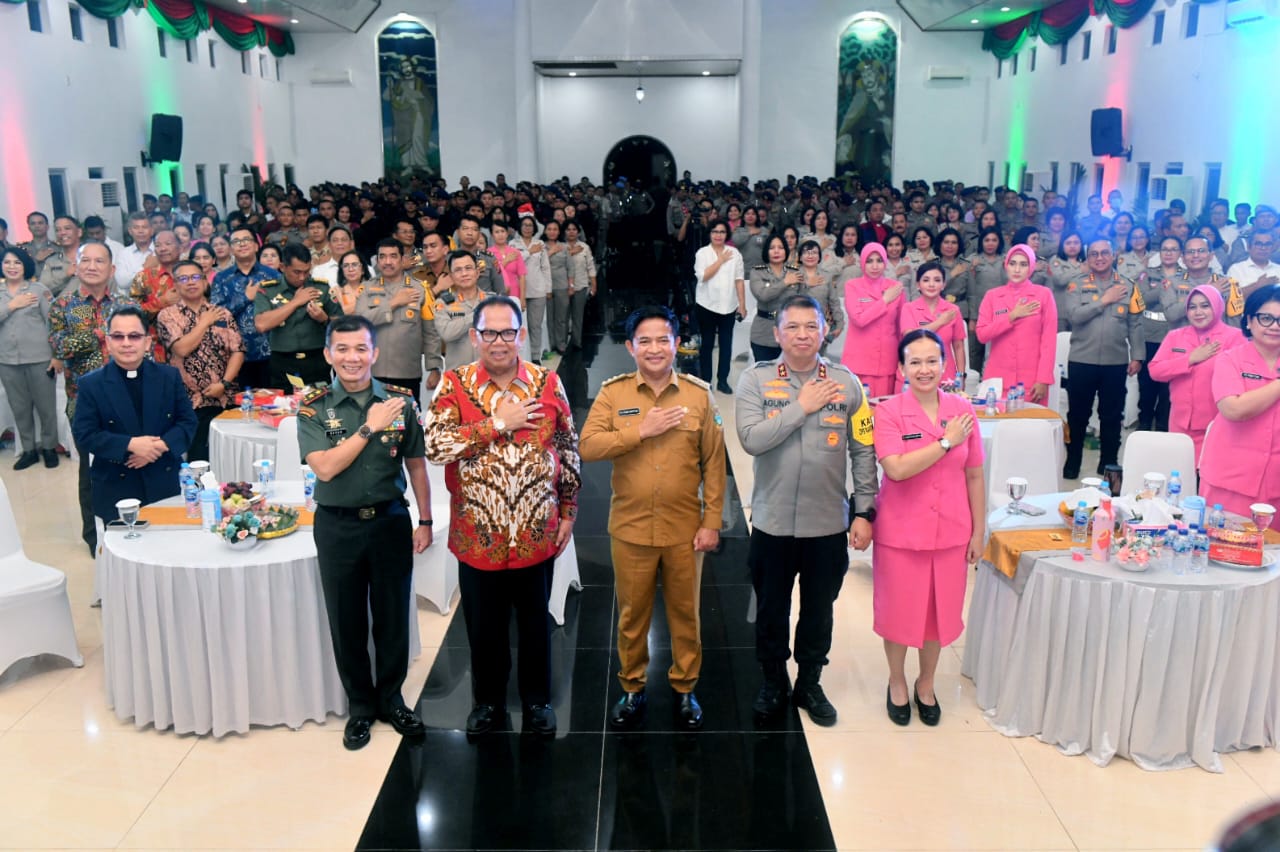 Polda Sumut menggelar Perayaan Natal dan Tahun Baru 2024 bersama unsur Forkopimda dan personel bertempat di halaman belakang Mapoldasu, Senin (15/1) malam.