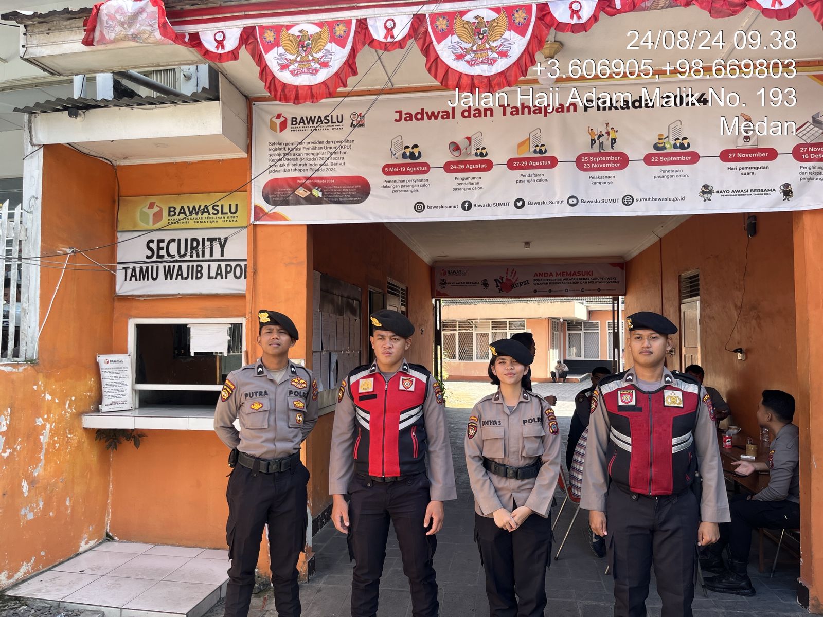 Polda Sumut melalui Direktorat Samapta Poldasu gencar melakukan pengamanan dan patroli di sekitar Kantor KPU dan Kantor Bawaslu terkait tahapan pendaftaran dan penetapan pasangan calon Gubernur dan Wakil Gubernur dalam Operasi “Mantap Praja Toba 2024”.