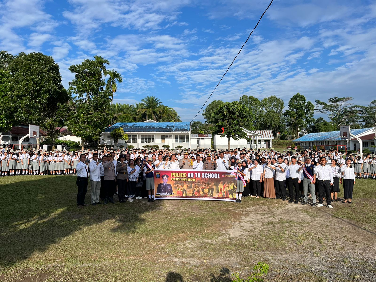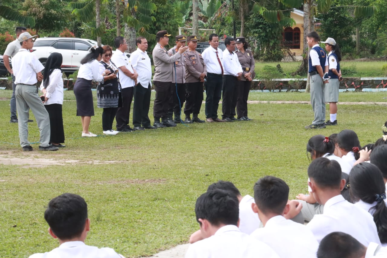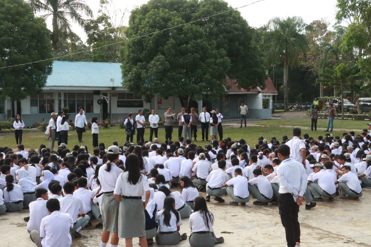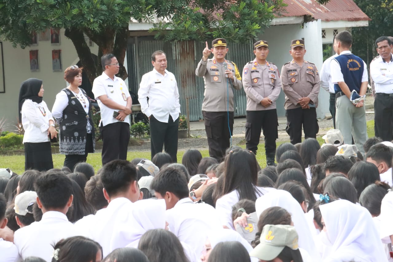 Simalungun, Serangkaian acara “Police Goes To School”, diselenggarakan di SMA Negeri 1 Dolok Panribuan, Jl. Parapat No.18, Tiga Dolok, Kec. Dolok Panribuan, Kabupaten Simalungun, pada Rabu, 25 Oktober 2023. Kegiatan ini dipimpin langsung Kapolres Simalungun, AKBP Ronald F.C Sipayung, S.H., S.I.K., M.H., dan dihadiri oleh berbagai pihak termasuk Kapolsek Dolok Panribuan AKP Nelson Butar-butar, Camat Dolok Panribuan, dan pihak Sekolah.