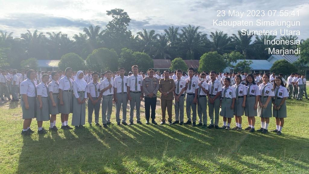Polres Simalungun Polda Sumatera Utara melaksanakan kegiatan police goes to school. Kegiatan berupa pembinaan dan penyuluhan tentang kenakalan remaja ini disampaikan ke siswa siswi di SMA Negeri 1 Panombean Panei, Kecamatan Panombean Panei Kabupaten Simalungun, Selasa (23/5/2023).