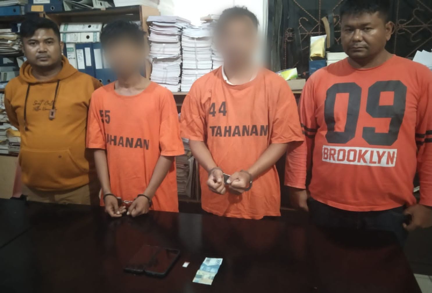 Dari “RS(28)” dan “DP(23)” berhasil diamankan 1 (satu) bungkus plastik klip transparan ukuran sedang yang berisi diduga narkotika jenis shabu dengan berat brutto 0,26 gram, 1 (satu) unit HP merk Vivo warna merah, 1 (satu) unit HP merk Iphone warna biru hijau dan Uang sejumlah Rp. 50.000,-
