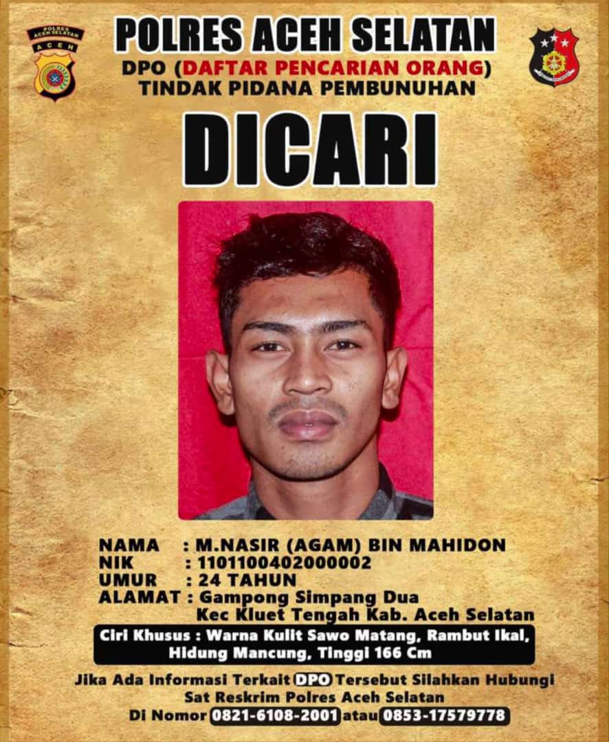 Dalam Hal ini Polres Aceh Selatan mengharapkan bantuan atau informasi terhadap DPO M Nasir (24) alamat Gampong Simpang Dua, Kecamatan Kluet, Kabupaten Aceh Selatan.
