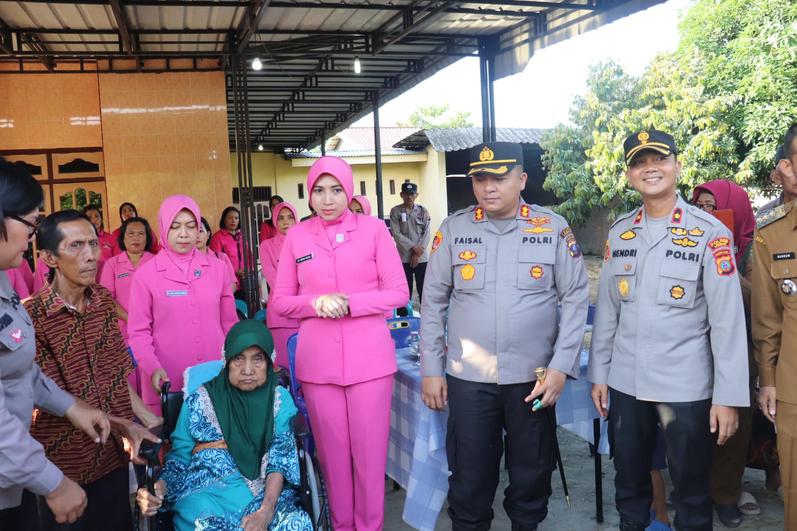 Sementara rangkaian kegiatan terdiri dari Penyerahan kursi roda Kapolres Langkat kepada ibu Arlin yg selama ini ibu Arlin di rawat inap di Puskesmas Tj.Beringin mengalami osteophyte (saraf terjepit) dan ganguan pendengaran.
