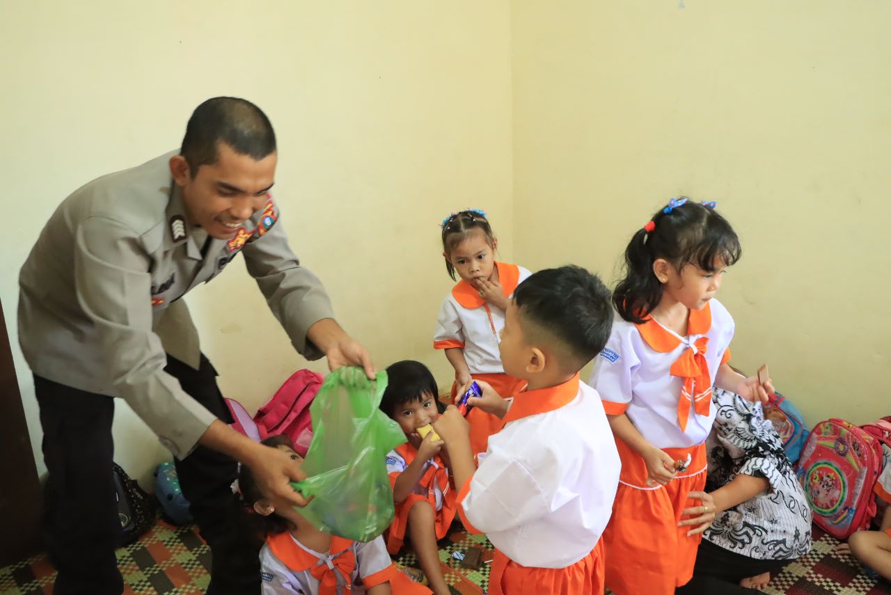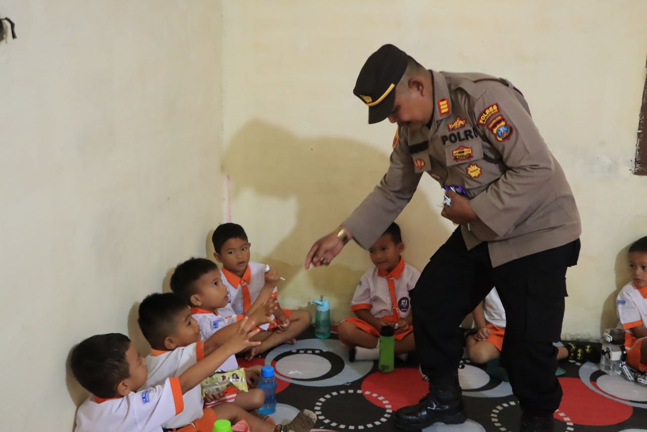 Dalam suasana yang ceria, Kapolsek Pangururan, AKP Marlen Sitanggang, bersama dengan personel Polsek Pangururan, menyapa anak-anak TK Rajawali dengan kegiatan bernyanyi bersama dan bercerita lucu. Tampak semangat dan kegembiraan terpancar dari wajah-wajah mungil mereka.