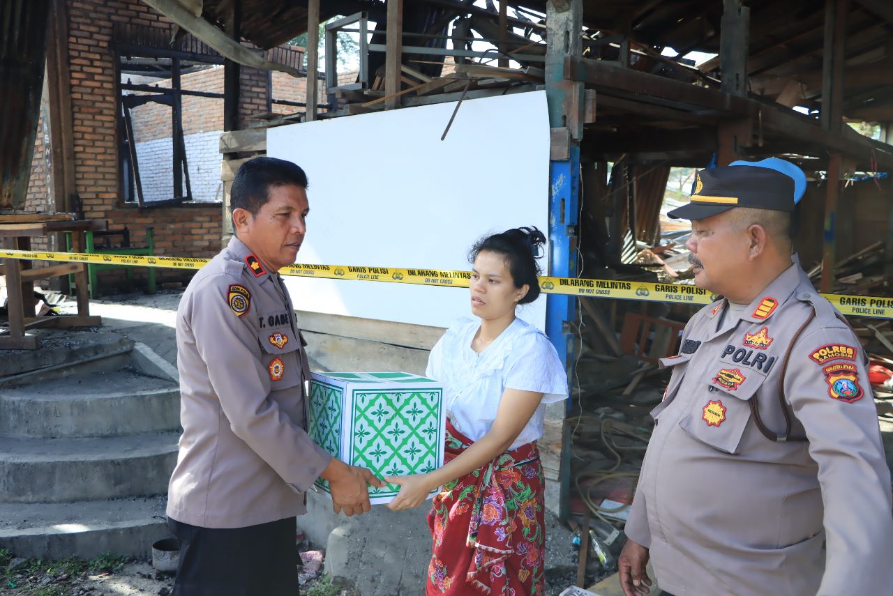 Dalam kunjungannya, Wakapolres Samosir memberikan kata-kata penghiburan kepada korban dan keluarga korban serta menyerahkan bingkisan tali asih dari Polres Samosir. Penyerahan bingkisan ini dilakukan di rumah keluarga korban yang berdekatan dengan lokasi kebakaran.