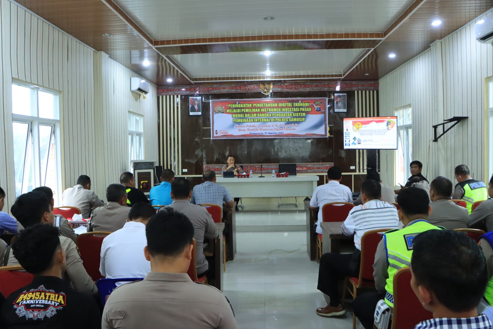 Untuk itu, Polres Samosir menggelar Kegiatan Peningkatan Pengetahuan Digital Ekonomi di Aula Wira Pinandita Mako Polres Samosir. Kegiatan ini bertujuan untuk meningkatkan pemahaman personil terkait instrumen investasi pasar modal guna memperkuat sistem internal Polres Samosir, Selasa (1 Agustus 2023).