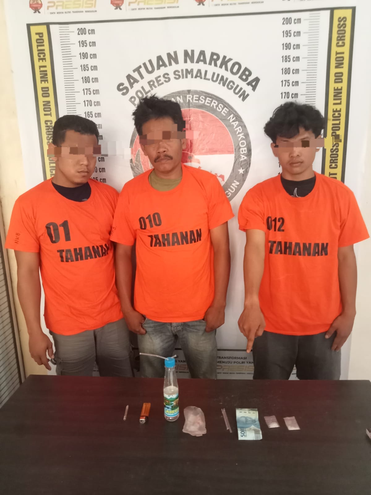Tim Reskrim Polsek Perdagangan tiba di lokasi pada pukul 15.00 WIB dan segera melakukan pengintaian. Setelah memastikan adanya kegiatan mencurigakan, petugas langsung melakukan penggerebekan dan berhasil mengamankan empat orang pria yang sedang berada di lokasi tersebut. Ketiga tersangka yang diamankan adalah Haris Maria Mirad Siregar (18 tahun), Zul Hazmi Siregar (27 tahun), dan Imran Pulungan alias Galepok (44 tahun). Selain ketiganya, terdapat satu orang lagi inisial “KH” Siregar yang berada di lokasi saat penggerebekan, namun ia mengaku hanya diajak oleh sepupunya dan tidak terlibat dalam aktivitas narkoba.