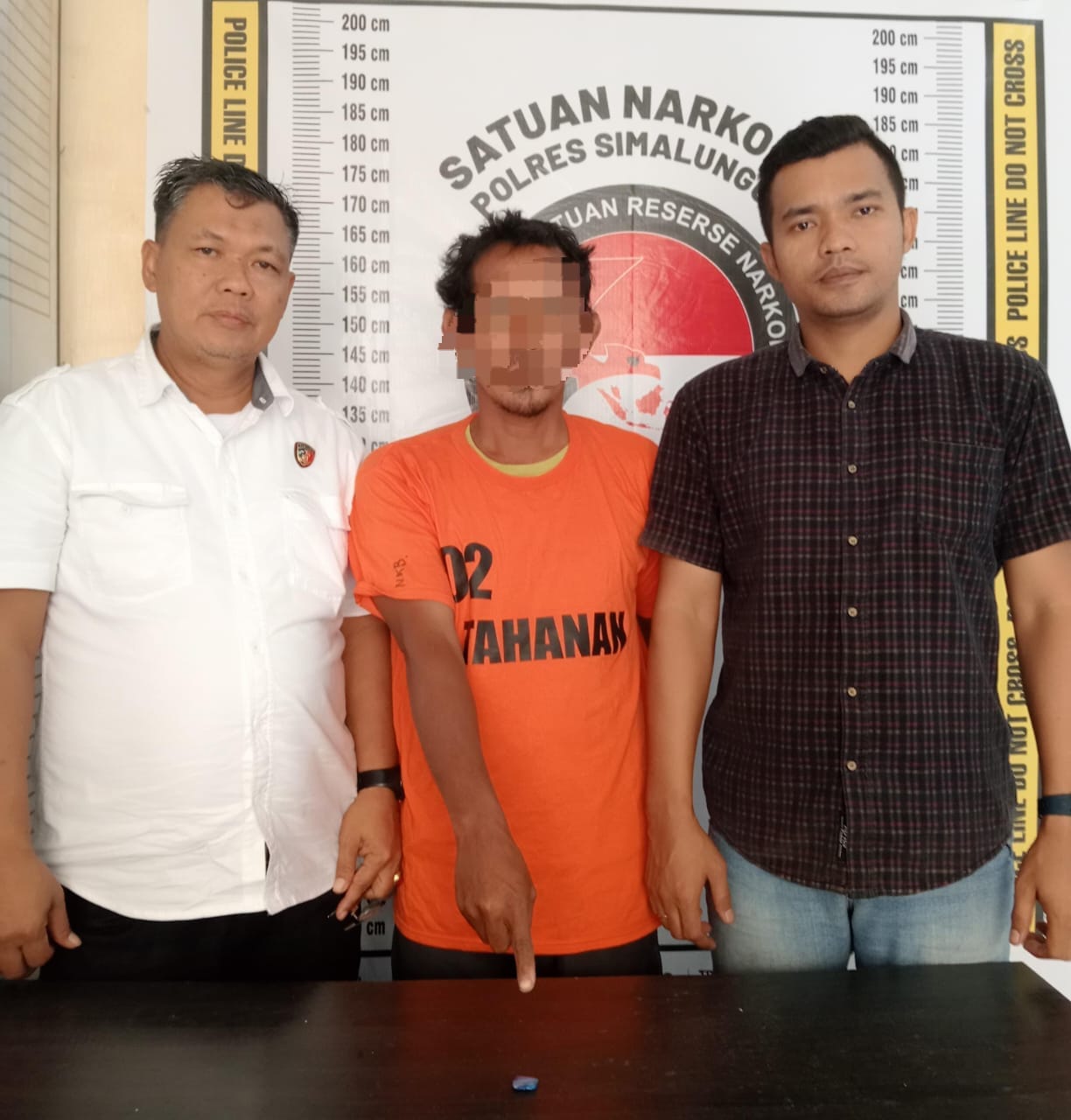 Tersangka yang berhasil ditangkap adalah seorang pria bernama M. Rahmad Doni, kelahiran Medan pada 5 Juni 1983. Rahmad Doni yang berprofesi sebagai wiraswasta dan berdomisili di Perumahan Pesona Hinalang, Kecamatan Purba, Kabupaten Simalungun, ditangkap saat sedang mengendarai sepeda motor Honda Revo Fit berwarna hitam. Saat penangkapan, petugas berhasil mengamankan satu paket klip transparan yang diduga berisi narkotika jenis sabu dengan berat bruto 0,18 gram. Sepeda motor yang digunakan oleh tersangka juga turut diamankan sebagai barang bukti.