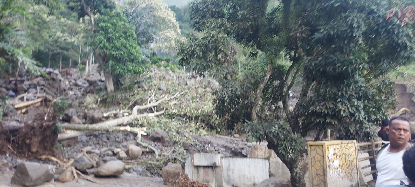 Selain itu, jalan umum yang menghubungkan Kecamatan Haranggaol dengan Tigaras, Kecamatan Pematang Sidamanik, kini dalam kondisi terputus total, dengan material banjir bandang yang masih berada di jalan dan aliran air yang persisten.