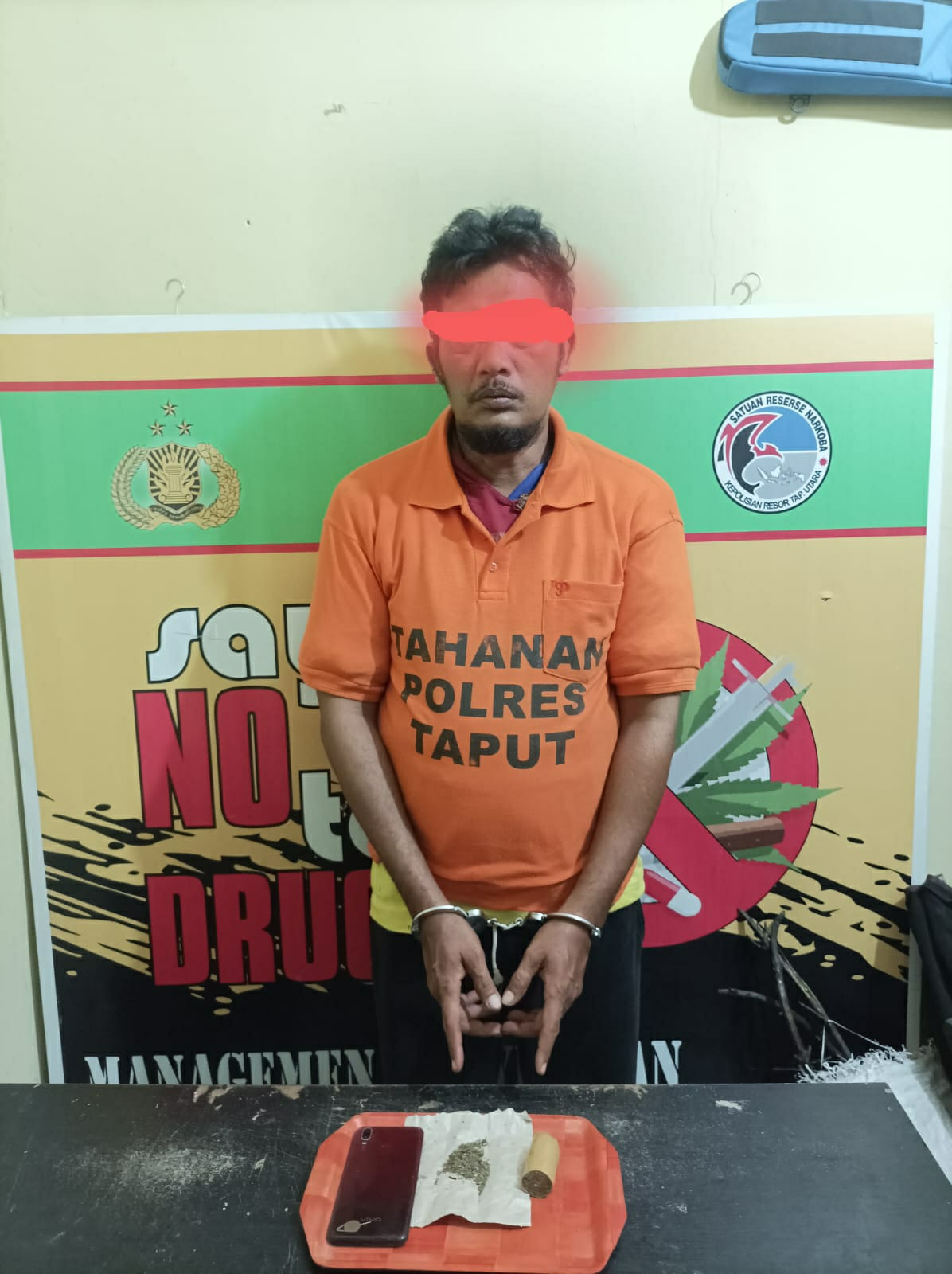 Saat penangkapan petugas pun berhasil menyita barang bukti dari kantong nya dan sebahagian di simpan dari rumahnya berupa 1 (Satu) paket narkotika jenis Ganja dibungkus kertas nasi warna cokelat dengan berat 1,42 (Satu Koma Empat Puluh Dua) Gram.