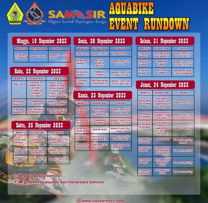 Rangkaian event Aqua bike di mulai dari tanggal 18 hingga 27 November 2023, oleh karena itu Mari kita Tunjukan Rasa Tangung jawab sebagai Personil pengamanan.