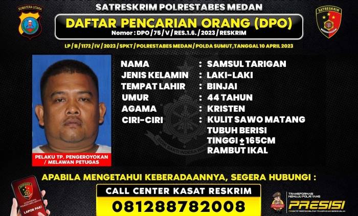 Samsul Tarigan disebut dalam pencarian karena melakukan penganiayaan dan penyerangan.