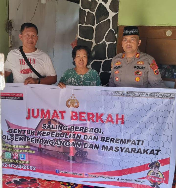Pada Jumat, 20 September 2024, pukul 11.30 WIB, Polsek Perdagangan menggelar kegiatan Jumat Barokah di Huta II Nagori Bandar, Kecamatan Bandar, Kabupaten Simalungun. Dalam kegiatan tersebut, Kapolsek Perdagangan, AKP. Ibrahim Sopi, SH, turun langsung didampingi sejumlah personel Polsek Perdagangan. Acara ini ditandai dengan pemberian bantuan sosial berupa paket sembako kepada warga yang membutuhkan. Salah satu penerima manfaat dari kegiatan ini adalah seorang perempuan bernama Ibu Poniem, seorang warga berusia 64 tahun yang tinggal di Huta II Nagori Bandar.