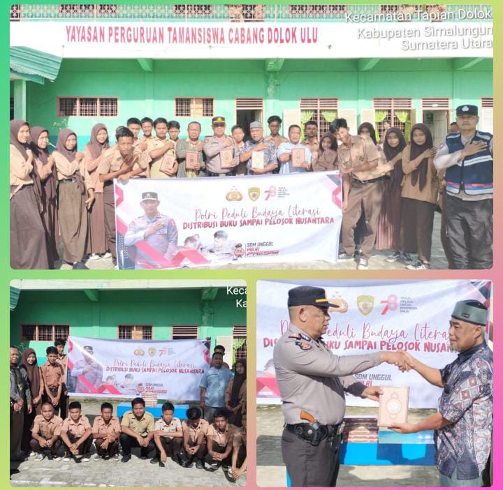 Kapolres Simalungun melalui Kapolsek Serbalawan AKP Abdullah Yunus beserta personil Bhabinkamtibmas melaksanakan program Quick Wins Presisi dengan implementasi menciptakan wawasan kebangsaan dan SDM yang unggul bagi siswa Yayasan Perguruan Taman Siswa, di Gedung Yayasan Perguruan Taman Siswa Cabang Dolok Ulu Jalan Masjid Lingkungan VII Sinaksak Kecamatan Tapian Dolok Kabupaten Simalungun, Sumatera Utara, Jumat (1/9/2023).