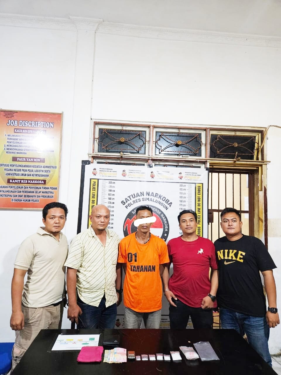 Tim yang terdiri dari empat personel yaitu Iptu Fritsel G Sitohang, S.H., M.H., Aipda Royen E. Sinurat, Bripka Hery Tampubolon, dan Bripka Bayu S. Herianto berhasil mengamankan berbagai barang bukti yang cukup signifikan. Barang bukti yang diamankan meliputi enam plastik klip berbagai ukuran berisi diduga narkotika jenis sabu seberat 32 gram, tiga bungkus klip sedang berisi plastik klip kosong, dan uang tunai sebanyak Rp 380.000.
