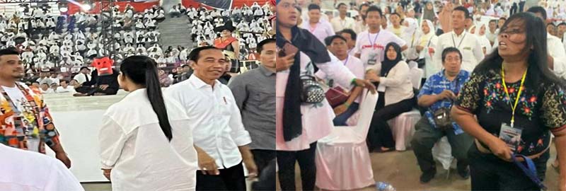 “Pak Jokowi-Pak Jokowi,” teriak ribuan relawan dengan harapan Jokowi mendatangi mereka.