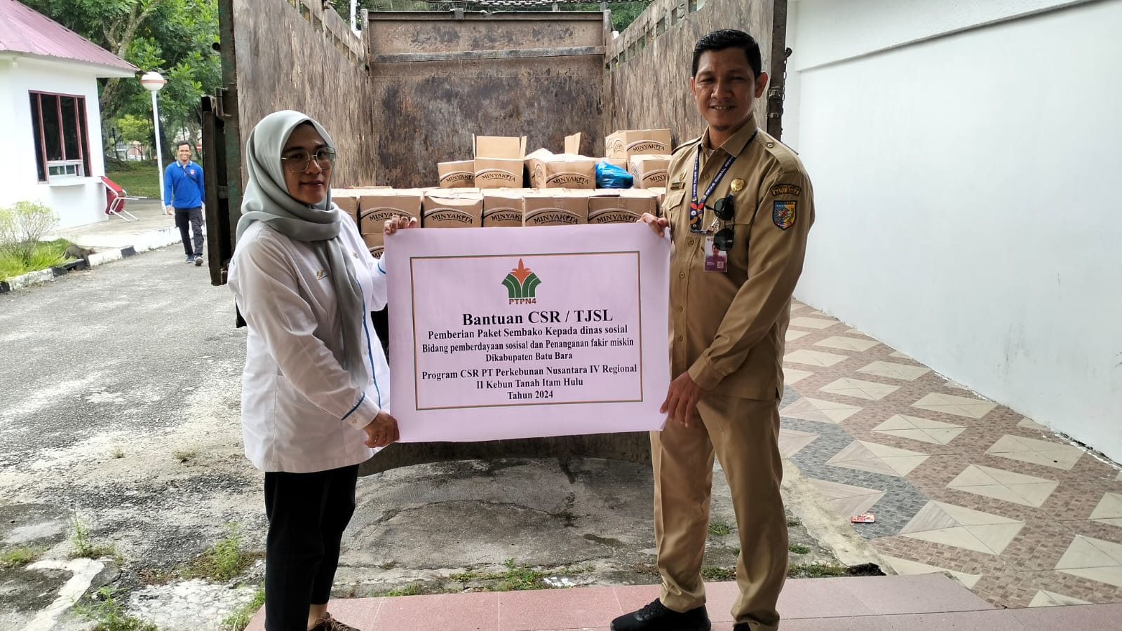 Untuk mendukung Pemerintah Kabupaten Batu Bara dalam membantu masyarakatnya yang kurang mampu,yang tidak menerima Bantuan Reguler (PKH dan BPNT) dari Kementrian Sosial R I, PT Perkebunan Nusantara-IV Regional II Kebun Tanah Itam Ulu melalui Program Tanggung Jawab Sosial Lingkungan (TJSL) memberikan bantuan sembako berupa minyak goreng yang disalurkan ke Dinas Sosial melalui Bidang Pemberdayaan Sosial dan Penanganan Fakir Miskin.