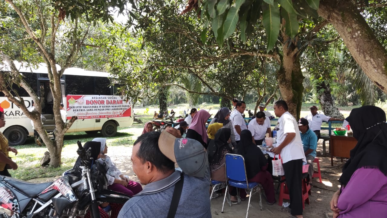 Manajemen PTPN IV Unit usaha Meranti Paham, bersama IKBI (Ikatan keluarga Besar Istri) dan Palang Merah Indonesia (PMI) Labuhan batu melaksanakan kegiatan bakti sosial donor darah.