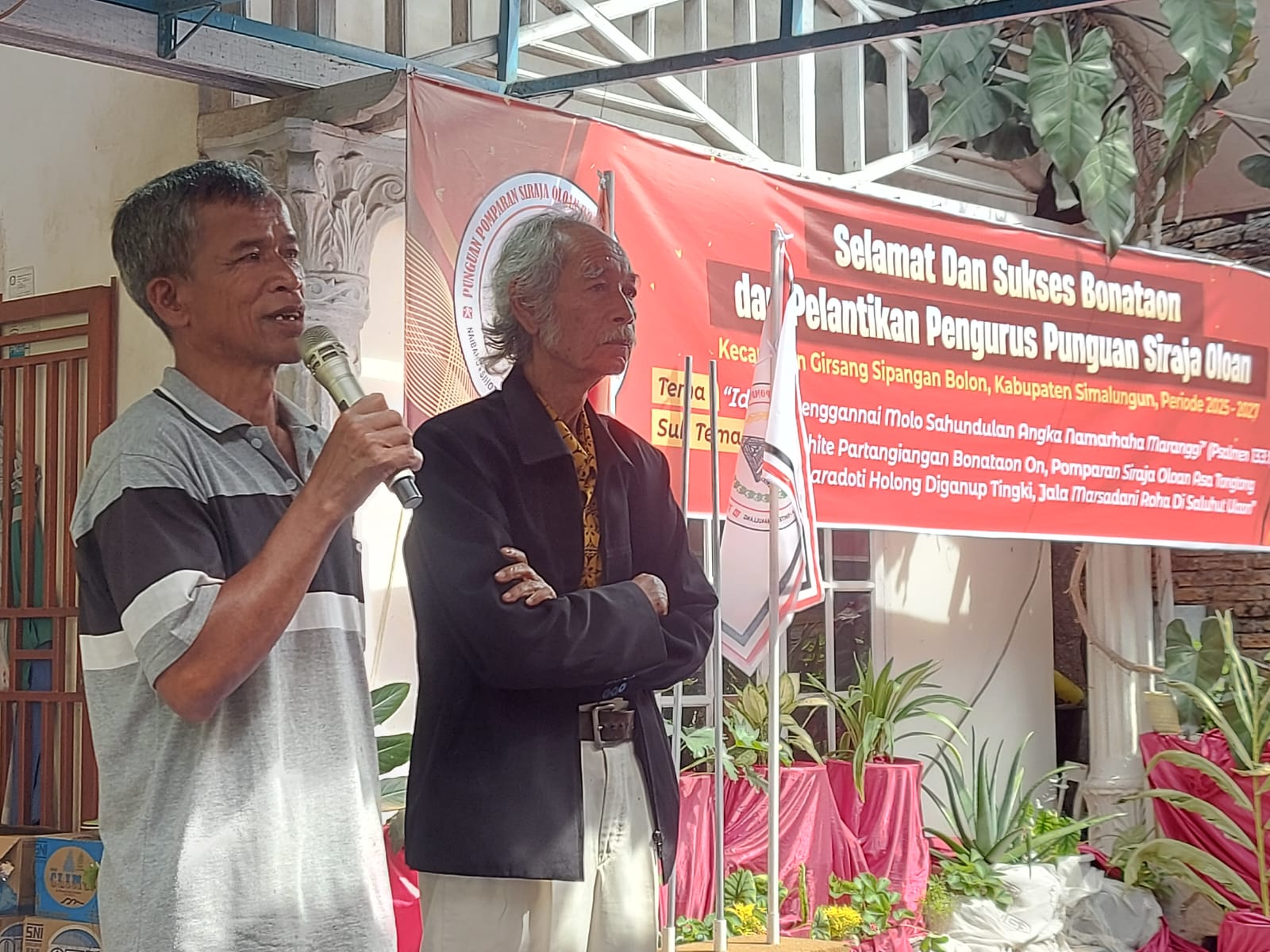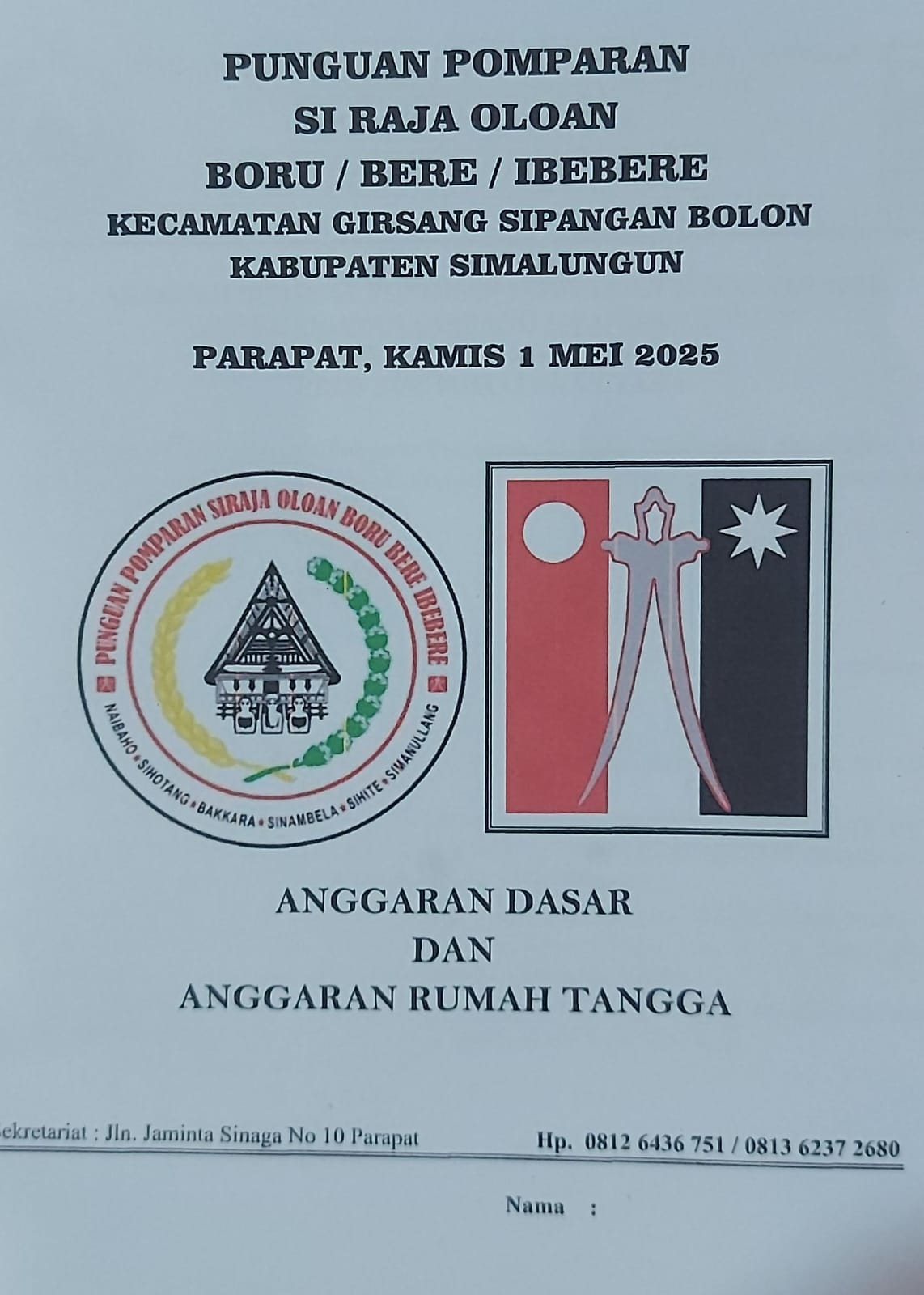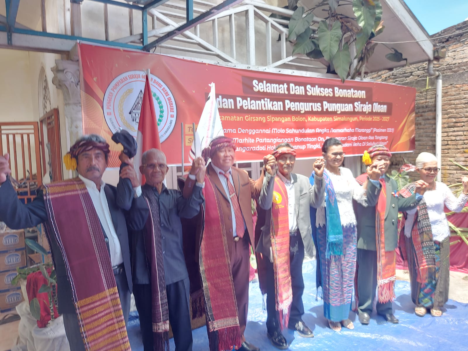 Punguan Pomparan Si Raja Oloan Boru Bere Ibebere Kecamatan Girsang Sipangan Bolon Kabupaten Simalungun, Sumut saat ini dipimpin Ipda Pol (Purn) Liber Naibaoho untuk periode 2025-2027, Doa dan Berkat bersama Pataka Siraja Oloan (SRO) diserahkan Tulang (Paman/Oppung) Limbong Mulana dan Pasaribu.
