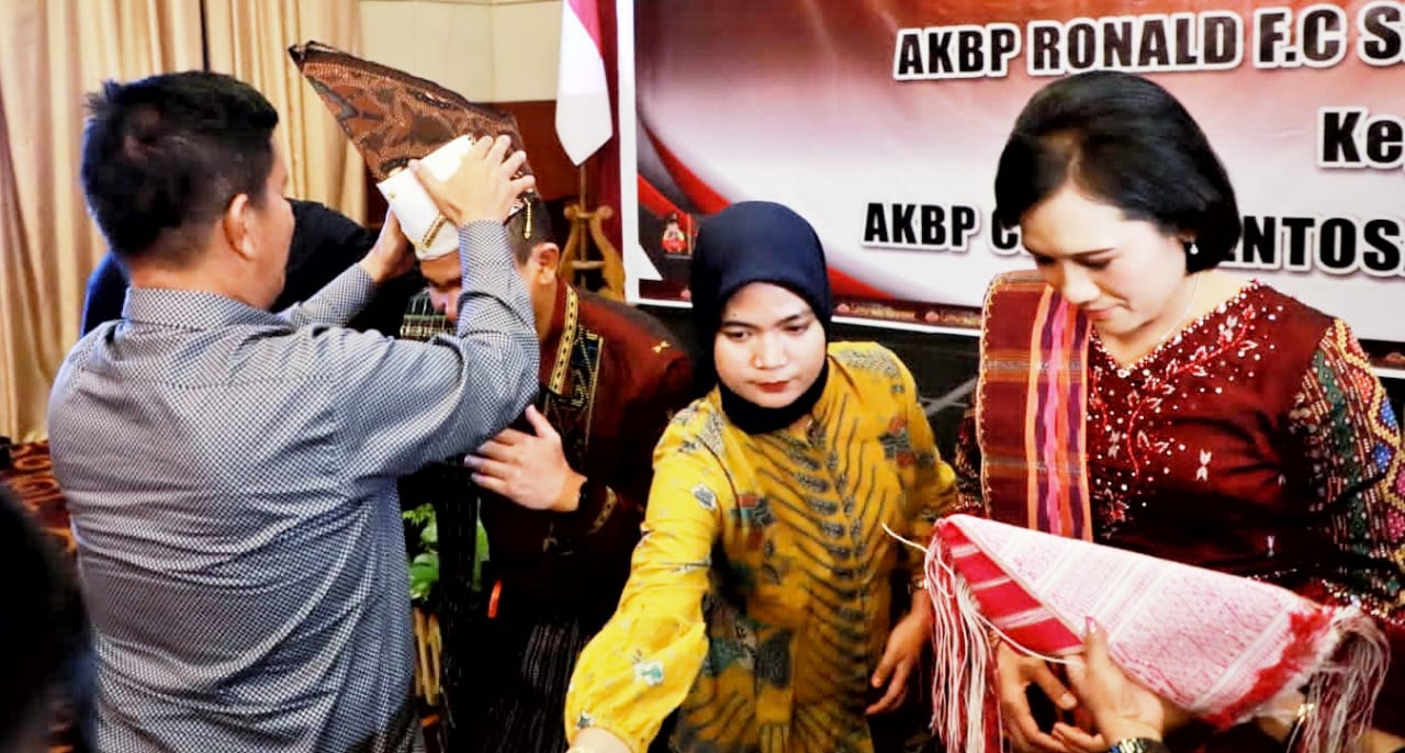 Pisah sambut tersebut ditandai dengan penyematan seperangkat pakaian adat Simalungun dan pemberian cendramata kepada AKBP Ronald FC Sipayung dan penyematan hiou pamoting kepada AKBP Choky Sentosa Meliala.