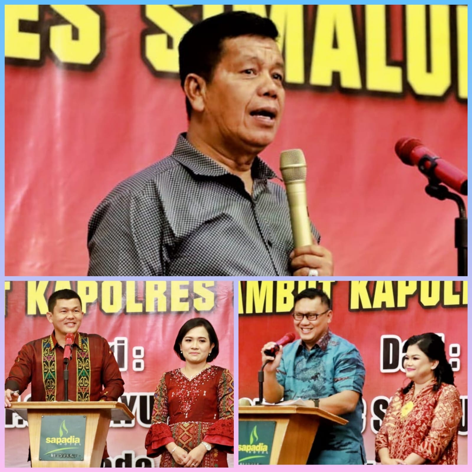Bupati Simalungun Radiapoh Hasiholan Sinaga menghadiri pisah sambut Kapolres Simalungun dari AKBP Ronald FC Sipayung kepada AKBP Choky Sentosa Meliala di Hotel Sapadia Kota Pematangsiantar, Selasa malam (9/1/2024).