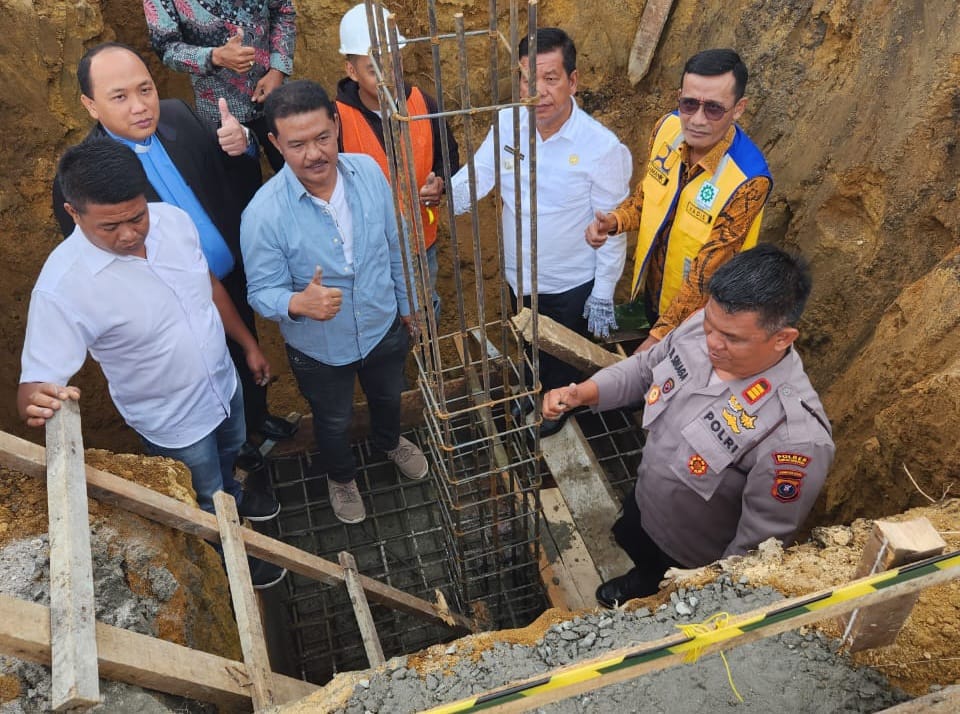 Bupati Simalungun Radiapoh Hasiholan Sinaga melakukan peletakan batu pertama Pembangunan kantor Camat Purba, berlokasi di Tiga runggu, Kecamatan Purba, Kabupaten Simalungun, Sumut, Kamis (20/7/2023).