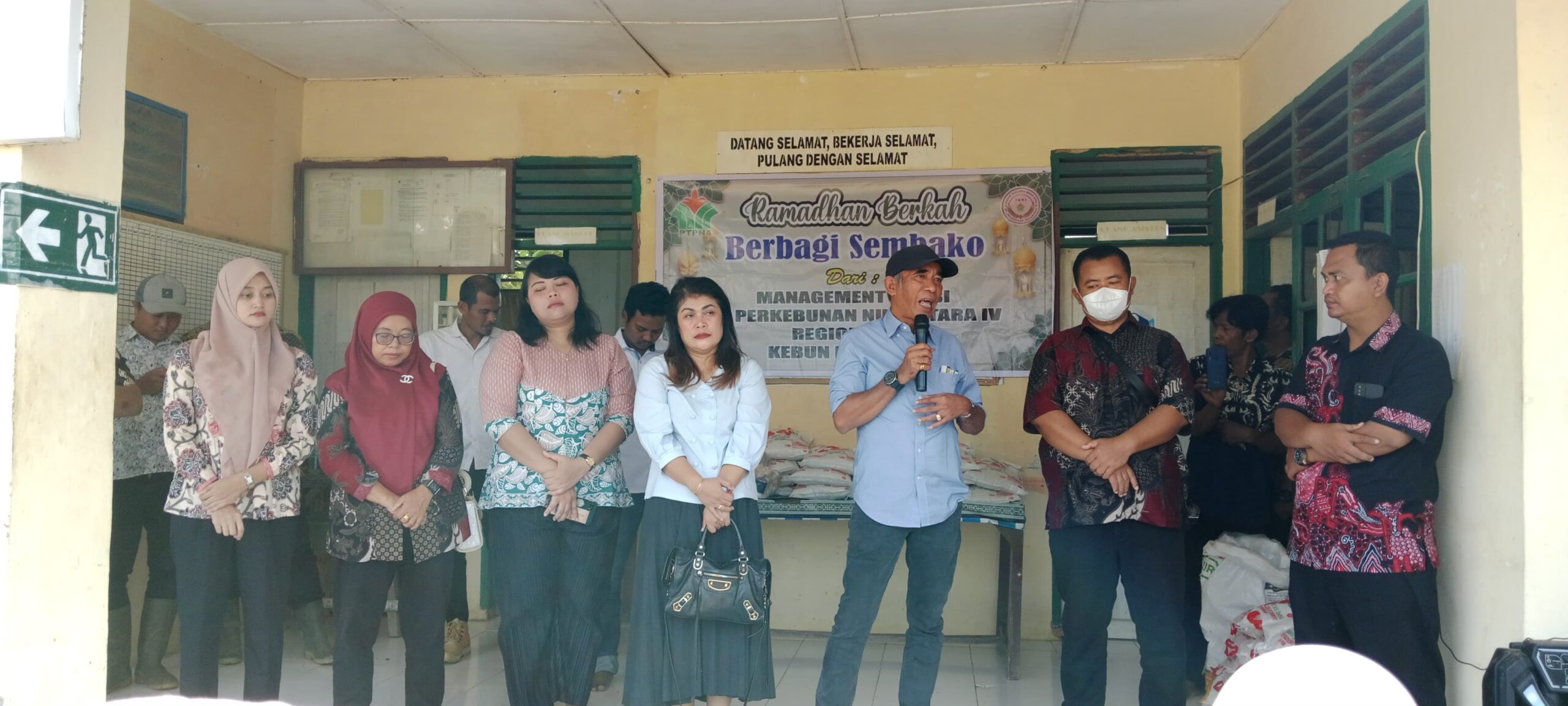 Keluarga besar Management dan IKBI PT Perkebunan Nusantara IV Regional-II Kebun Dolok Ilir membagikan Sembako berupa Beras 5kg, Gula1kg, Bubuk teh (Butong Tea) 1 kotak berjumlah 100 paket kepada masyarakat sekitar Kebun Dolok Ilir yang kurang mampu.