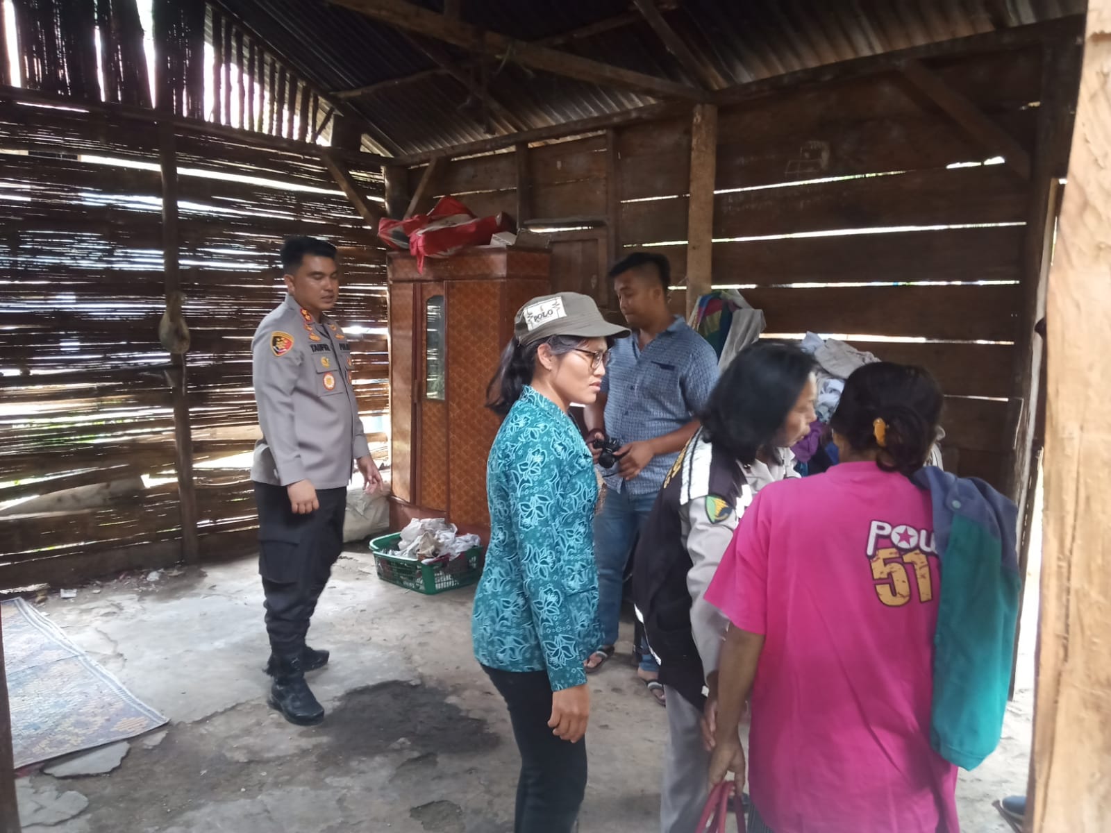 Seorang ibu yang sudah lama menjanda Kartini Manurung (43) tinggal bersama 3 orang anaknya yang saat ini masih sekolah merasa Kaget dan terharu atas kedatangan Kapolres Toba AKBP Taufiq Hidayat Thayeb SH, S.ik bersama Wakil Bupati Toba Tonny Simanjuntak SE saat mengunjungi rumahnya di Desa Sibaruang Kecamatan Lumbanjulu Kabupaten Toba Provinsi Sumatera Utara, Selasa (25/07/2023).