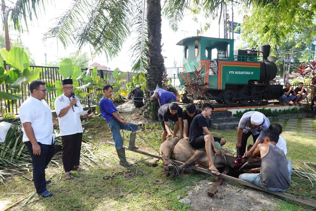 Termasuk 18 ekor sapi bantuan program Tanggung Jawab Sosial dan Lingkungan (TJSL) PTPN IV dan 1 ekor sapi sumbangan Bank Syariah Indonesia (BSI) Cabang Medan.