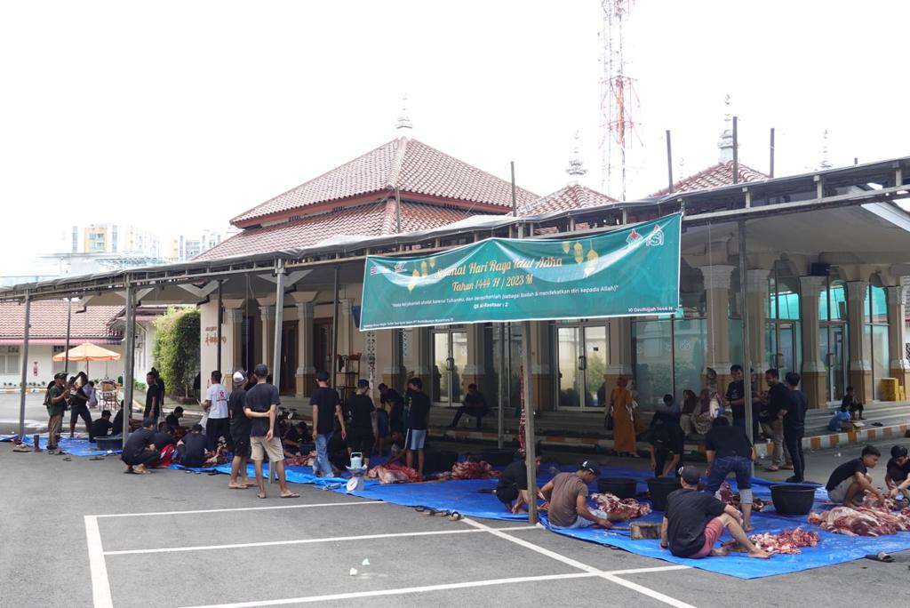 Manajemen PT Perkebunan Nusantara IV (PTPN IV) melaksanakan kurban dalam rangka Iduladha 1444 Hijriah. Proses penyembelihan hewan berlangsung di kantor direksi dan seluruh unit grup PTPN IV di Sumatera Utara, Kamis (29/6/2023).