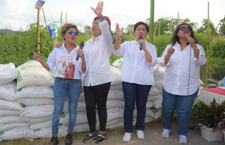 Artis Batak Rita Butarbutar bersama rekannya dari artis komunitas Jatibening yaitu personil RNB Trio (Reni Siregar, Netty Sihotang) termasuk Siska Manurung hibur warga di Desa Nagasaribu V Kecamatan Lintongnihuta Kabupaten Humbahas, Kamis (18/5/2023).