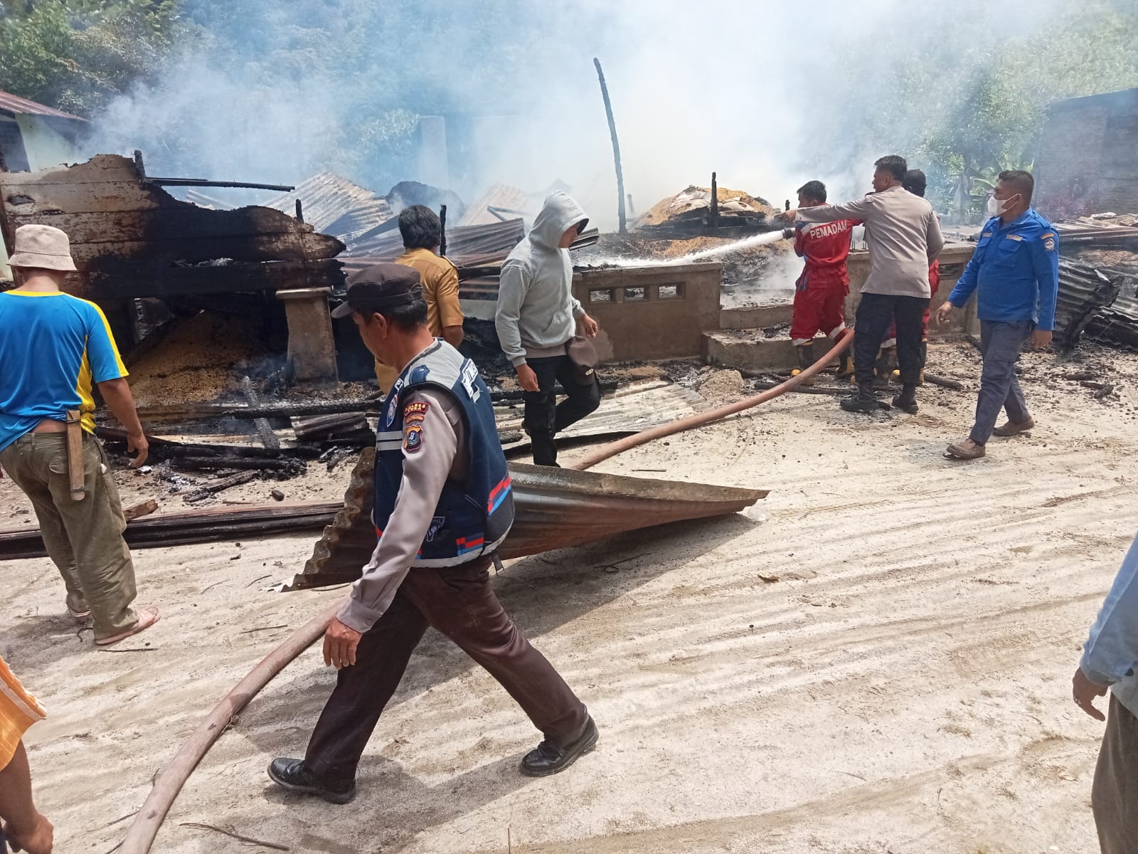 Mendapat laporan personil Polsek Lbn Julu berjibaku turun langsung melakukan pemadaman api tersebut bersama masyarakat, Kapolsek Lumban Julu bersama Personilnya langsung bahu membahu memberikan pertolongan untuk memadamkan api dengan kerjasama tim Damkar.