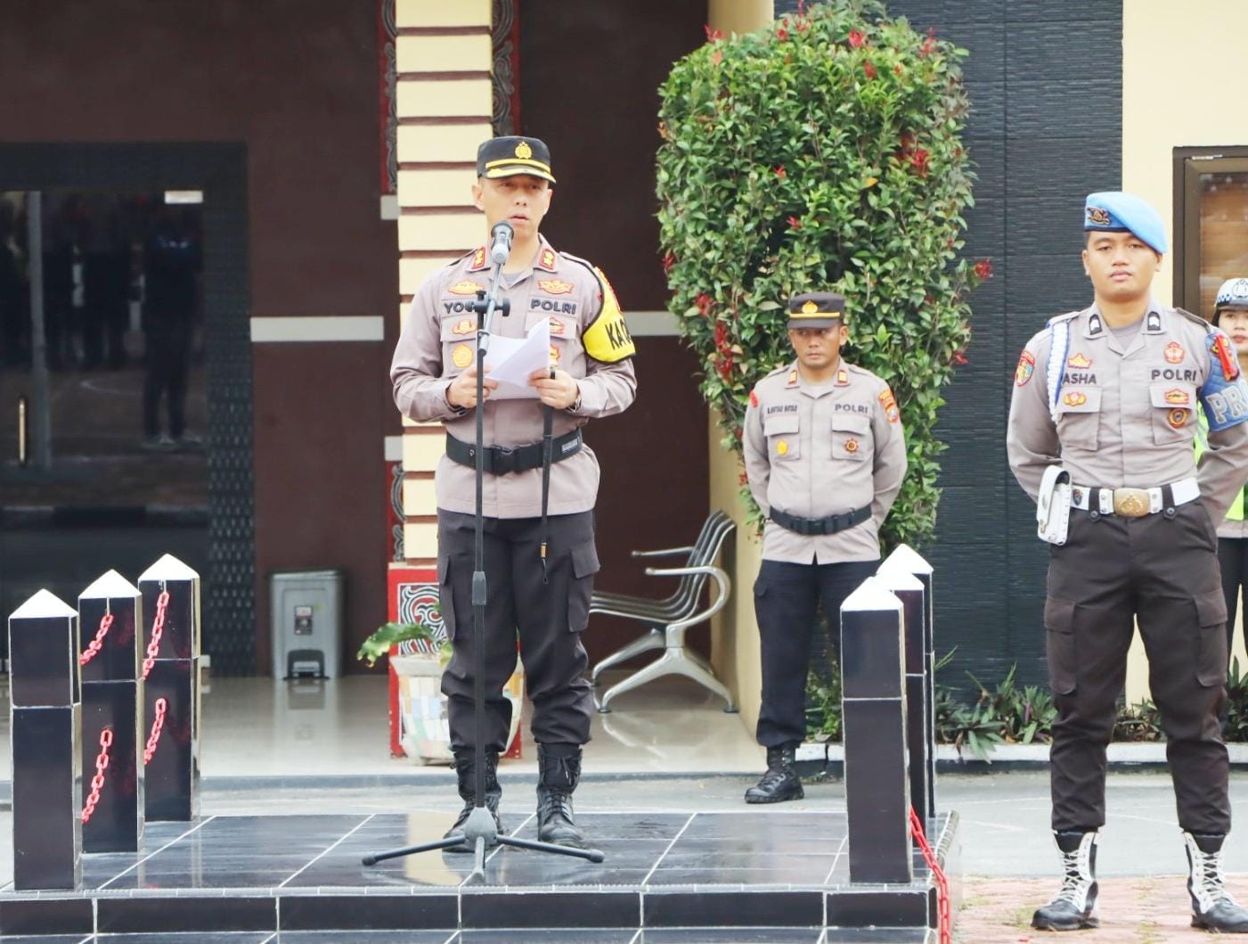 Dalam arahannya, Kapolres juga membahas tentang Operasi Mantap Brata Toba 2024 yang sedang berlangsung, bertujuan menciptakan situasi yang kondusif selama pemilu. Beliau menekankan pada kegiatan seperti Cooling System, Pojok Pemilu, patroli ke objek vital Pemilu, serta pengamanan kegiatan masyarakat.
